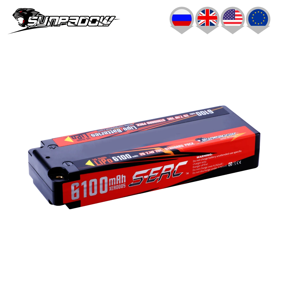 SUNPADOW 7,4 V 2S Lipo аккумулятор 6100mAh 70C жесткий чехол с 4 мм пулей для RC грузовика автомобиля Truggy Багги Vehice хобби