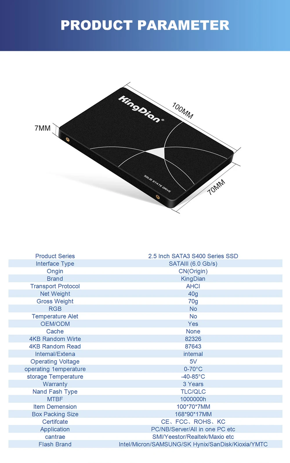 Жесткий диск KingDian SATA3 2,5 дюйма SSD 120 ГБ 128 ГБ 240 ГБ 256 ГБ 480 ГБ 512 ГБ 1 ТБ