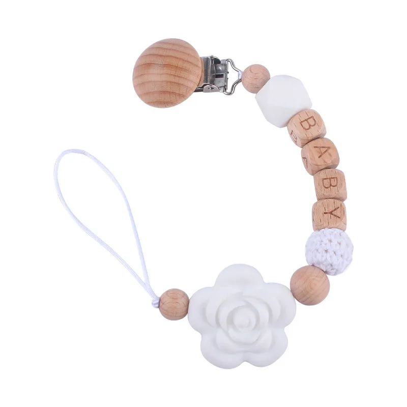 Жевательные бусины из бука с именем на заказ, цепочка клипсы для пустышек, милая детская игрушка для прорезывания зубов, цепочки для соски