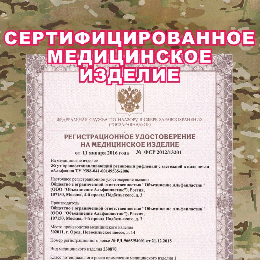 Жгут АЛЬФА кровоостанавливающий Бубнова медицинский для военных 100 см