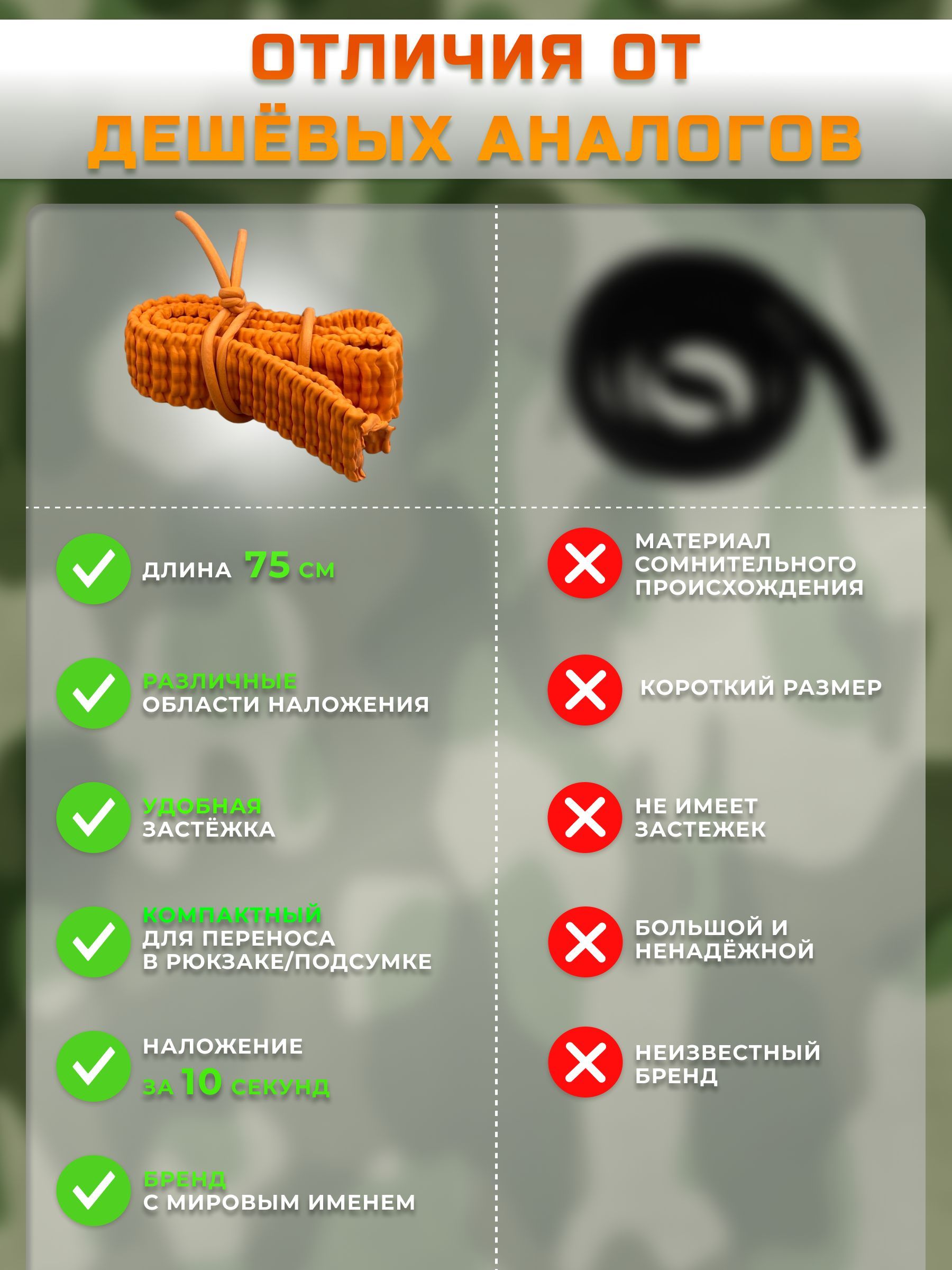Описание: Жгут кровоостанавливающий АЛЬФА (Бубнова) предназначен для временной остановки кровотечения; нестерилен, изготовлен из резины, имеет застежку в виде петли. Предназначен для использования при артериальных кровотечениях из верхних и нижних конечностей, при синдроме сдавливания - в качестве защитных жгутов, при отеке легких – в качестве турникетных жгутов для " бескровного кровопускания". Перед применением следует протереть марлевым тампоном, смоченным в 3%-ном растворе перекиси или салфеткой антисептической апполо 13*18, затем промыть проточной водой. ОСОБЕННОСТИ: -вертикальные валики сохраняют целостность нервных пучков и трофики кожи на месте пережатия; возможность фиксации даже одной рукой; легко моется от грязи и крови; можно накладывать на голую кожу; максимальная фиксация жгута при наложении первого тура; минимальное время наложения жгута; жгут быстро и легко накладывается и легко снимается (норматив около 10 секунд); имеет удобную застежку в виде резиновой петли; жгут кровоостанавливающий рифленый «Альфа» не теряет форму при многоразовом использовании и стоек к многократным дезинфекциям. В условиях эксплуатации нетоксичен и не вызывает местнораздражающих или аллергических эффектов. Рекомендуем к просмотру запросы по которым также можно найти наш магазин: эсмарха, тактическая, бинт медицинский, рулон салфеток, первые три минуты. Может использоваться для повязки на голову м, повязки на рану , подушка медицинская. Помещается в подсумок. Аптечка кровоостанавливающее средство в комплексе с ипп/ппи апполо- спасет жизнь при массивном кровотечении! Бинт медицинский- с легкостью иммобилизирует рану. Жгут турникет, хитокол - дополнит/заместит механическое воздействие при борьбе с кровотечением. В комплексной ЭКСТРЕННОЙ ТЕРАПИИ рекомендуем БИО гранулы 15гр/ 35гр - того же бренда, в составе которых присутствует хитозан про! Все необходимое для оказания первой помощи - Гепоглос бинт Z укладки - бинт для активации свертывания крови, Изотермическое одеяло - предотвратит шоковое состояние, а гель пакет (апполо) 5 гр. окажет помощь при термических повреждениях; Бинт 5*20/ 3*20; Салфетка стерильная 13*18 ! Тактическая аптечка это первая помощь для сохранения вашего здоровья! И здоровья пострадавшим в несчастных случаях, техногенных авариях и других экстремальных ситуациях, в том числе в ходе военных действий, специальных военных операциях (СВО)! Будь готов к чрезвычайным экстренным ситуациям! СПАСИ ЖИЗНЬ СЕБЕ или ТОВАРИЩУ! Прекрасно помещающиеся в любую сумку медицинскую, укладку. Инструкция по применению в комплекте + в описании.