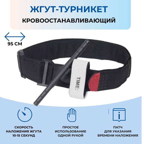 Описание: Жгут кровоостанавливающий тактический типа турникет-закрутка используется для оказания первой медицинской помощи при ранениях и травмах с открытым кровотечением. Оснащен патчем для указания времени наложения. Применяется как в боевой медицине, так для выживания в условиях дикой природы. В отличии от многих жгутов, данный жгут-турникет может применяется как на теле, так и поверх одежды! Имеет максимально сильную и надежную фиксацию при сильном натяжении жгута.