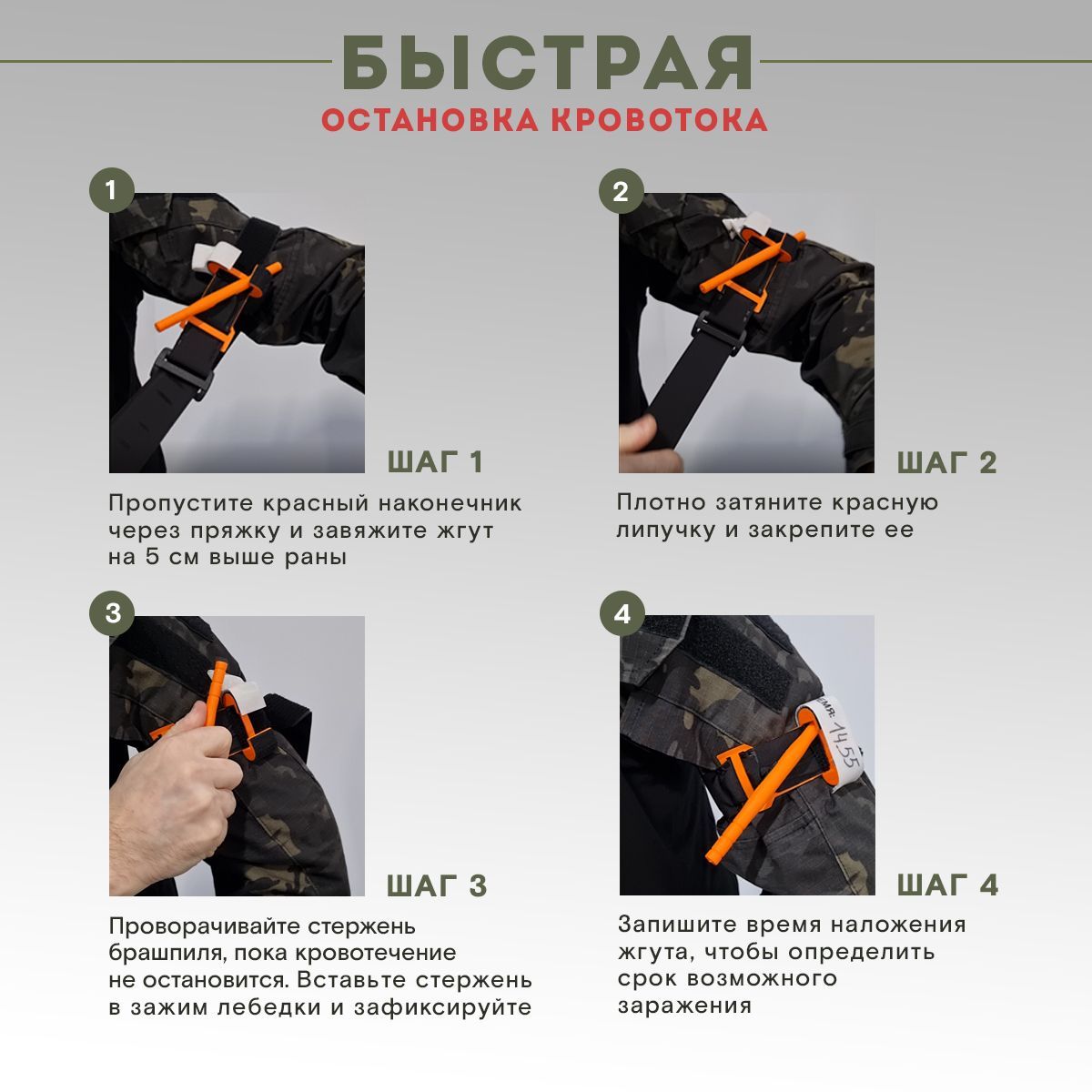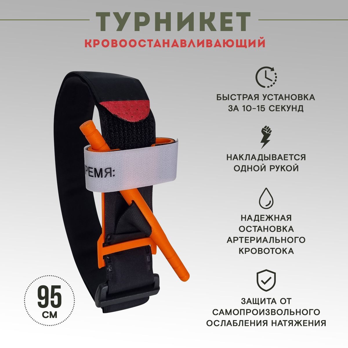 · Турникет оснащен патчем для указания времени наложения жгута на русском языке;