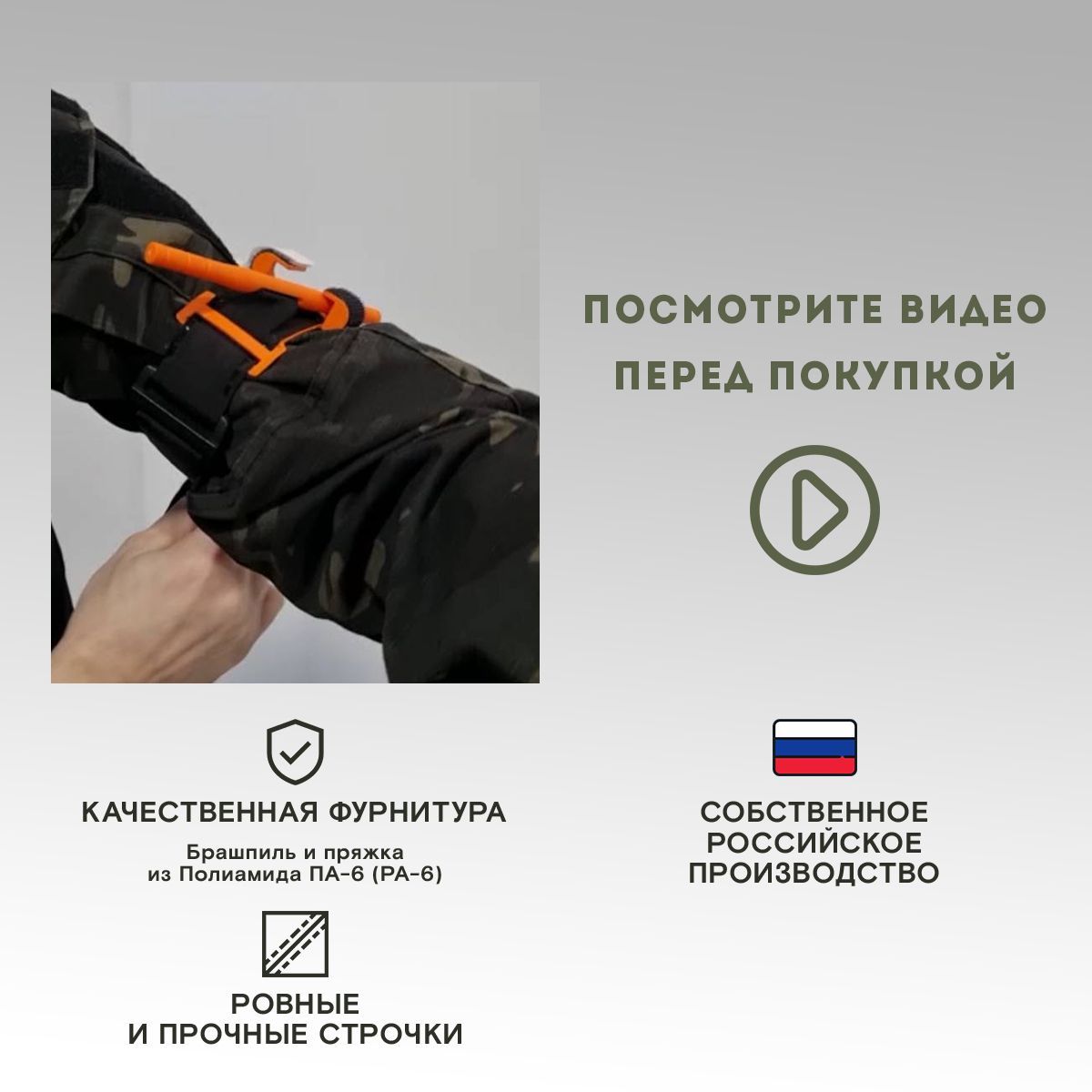 · Надежность. Конструкция жгута компании TAKTIKX собственного производства исключает возможность случайного ослабления или поломки. Система крепления не дает сбоев даже в условиях сильных загрязнений, холодов или влажности;