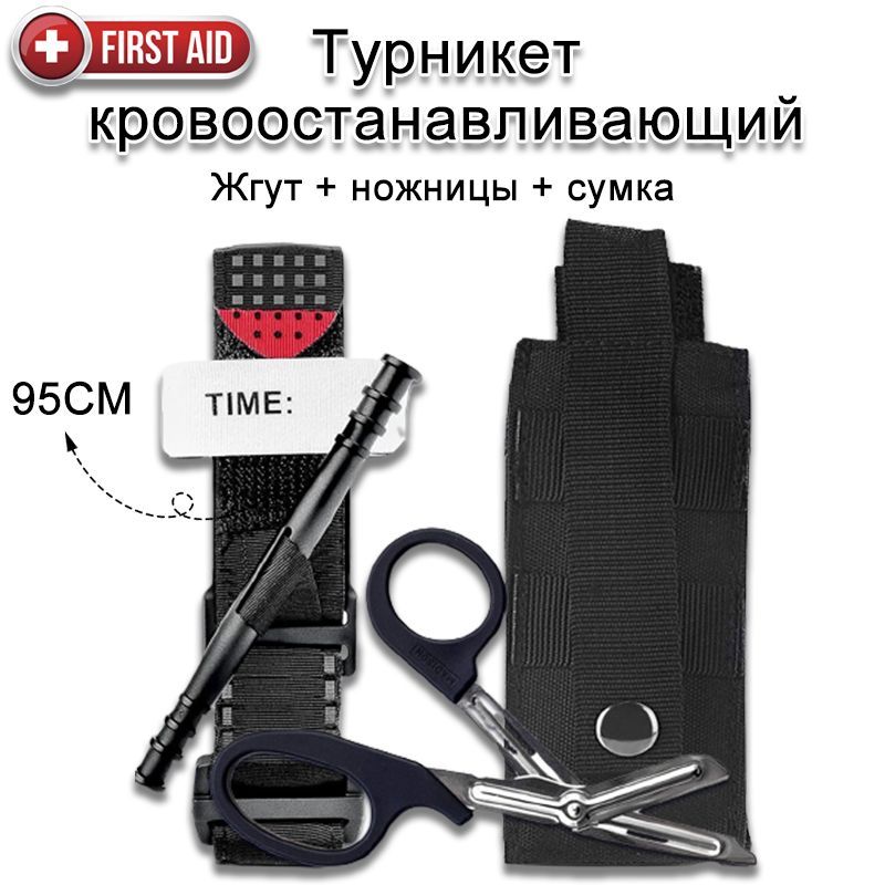 Жгут Кровоостанавливающий Типа Турникет-Закрутка / Тактические ножницы / чехол для хранения, тактический набор CAT