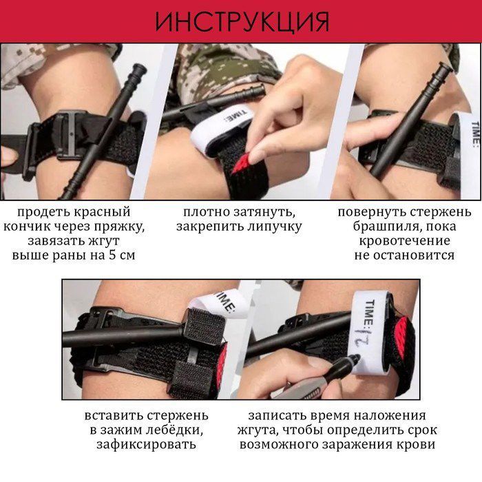 Описание: Кровоостанавливающий жгут-турникет. В комплекте 4 штуки.