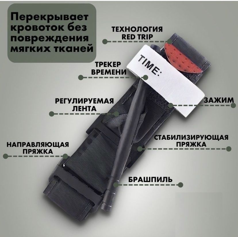 В отличии от многих именно данный жгут-турникет применяется как на теле, так и поверх одежды! Имеет максимально сильную и надежную фиксацию при сильном натяжении жгута.
