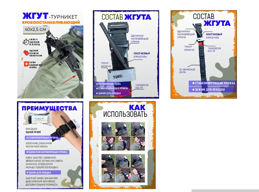 Описание: Жгут турникет тактический кровоостанавливающий. Такой жгут медицинский разработан для оказания быстрой медицинской помощи при травмах с открытым кровотечением. Жгут венозный необходимо иметь в домашней аптечке, в машине, при поездке в поход и пр. Часто жгут турникет используют специализированные медицинские учреждения и кареты скорой помощи. Турникет кровоостанавливающий разработан из плоской ленты и оснащен застежкой Велькро. Конструкция жгута состоит из двух частей, стягивающихся между собой стропами и катушкой с рычагом. Автоматическая фиксация рычага. Повязка на рану обеспечивает оптимальную плотность регулировки и не доставляет болевых ощущений. Вы сможете наложить жгут самостоятельно себе или другому человеку потратив на это 10-15 секунд, что значительно уменьшит потерю крови в экстренной ситуации. Жгут кровоостанавливающий венозный обеспечит надежную остановку крови любых конечностей