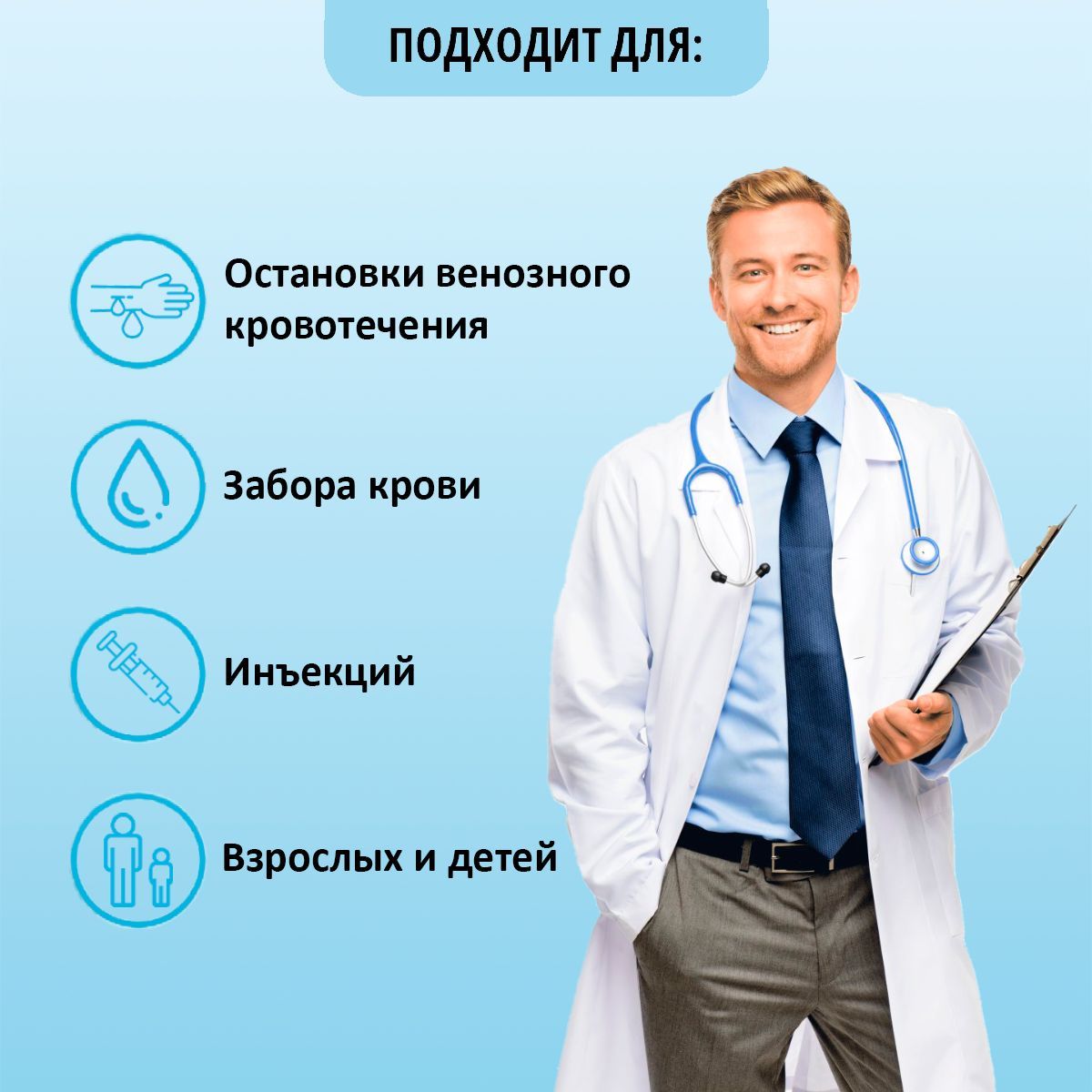 Описание: Жгут венозный кровоостанавливающий медицинский применяется для забора венозной крови, проведения внутривенных инъекций и капельниц, а также для остановки венозных кровотечений.