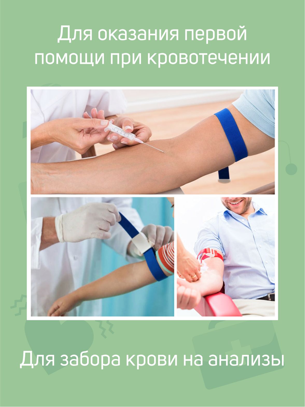Описание: Жгут медицинский с застёжкой применяется для забора венозной крови, проведения внутривенных инъекций, а также для остановки крови. Жгут венозный состоит из эластичной резинотканной ленты синего цвета и застежки. Ширина ленты 2,5 см. Длина ленты 40,5 см. Жгут для многоразового использования. Относится к категории товаров для оказания первой медицинской помощи. Поможет остановить кровь до приезда скорой помощи. Жгут упакован в прозрачный пакет, внутри находится инструкция по применению. Изготовлен из гипоаллергенных материалов.