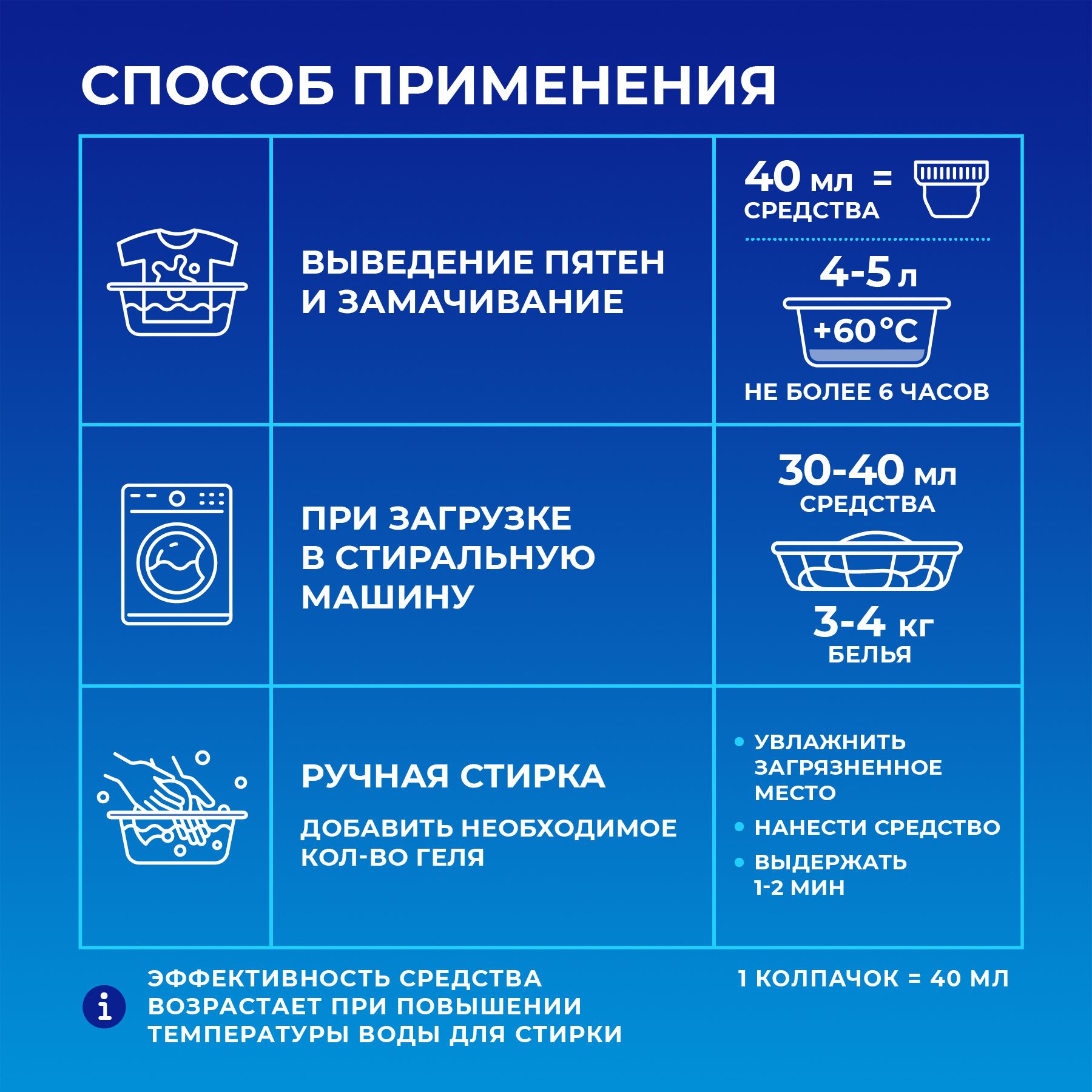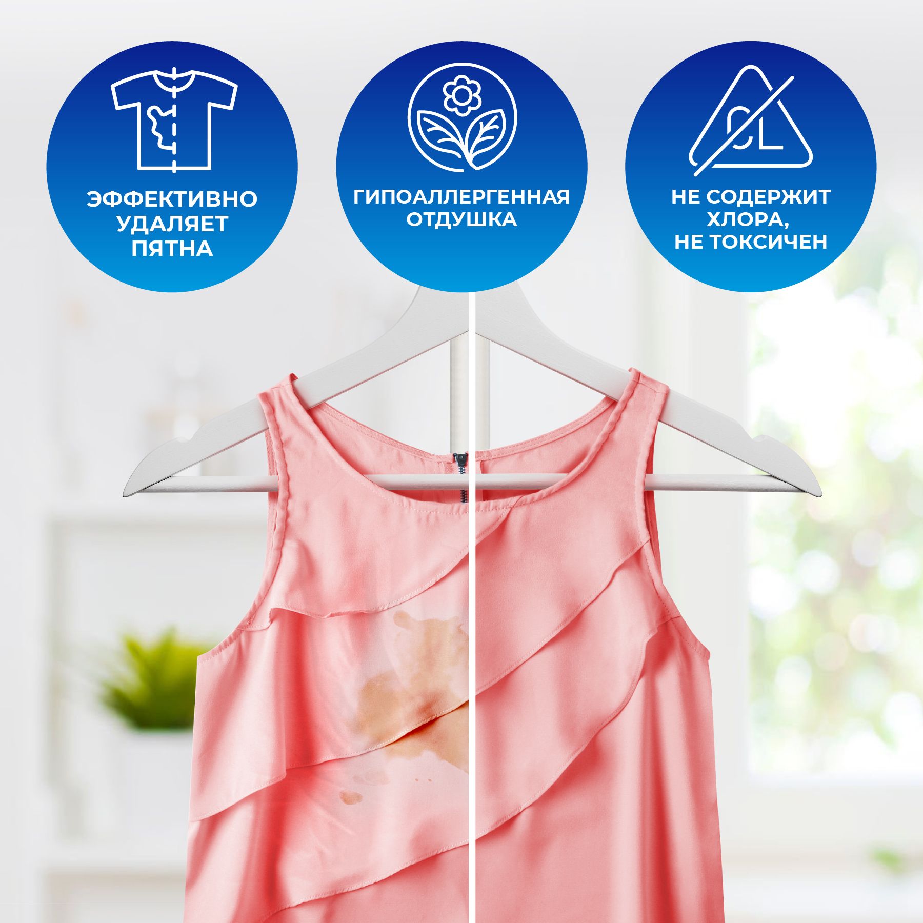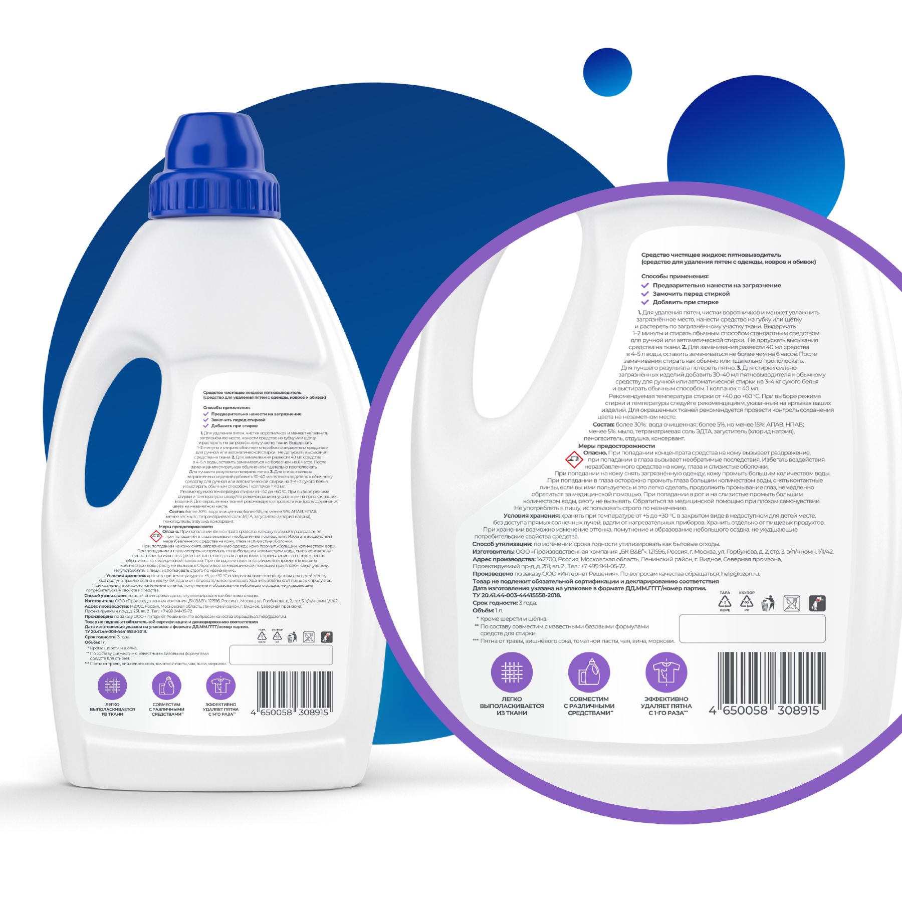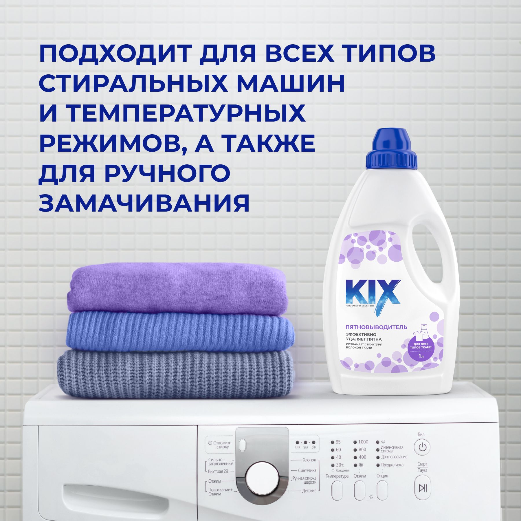 Описание: Жидкий пятновыводитель для белья KIX удаляет даже самые сложные пятна и загрязнения со всех типов ткани*, сохраняя структуру волокон ткани. Жидкий пятновыводитель подходит как для белых, так и для цветных вещей. Пятновыводитель можно использовать как для предварительного замачивания белья, так и для стирки вместе со стиральным порошком — так борьба с загрязнениями будет еще эффективнее! Жидкий пятновыводитель KIX имеет гипоаллергенную отдушку, не содержит красителей, синтетических цеолитов, нефтепродуктов, фосфатов и хлора. Нетоксичный, экологически чистый, биоразлагаемый, безопасен для человека и природы. Подходит для стирки детских вещей. — Легко выполаскивается из ткани — Подходит для всех типов стиральных машин и любых температурных режимов — Совместим с различными средствами для стирки, усиливает их эффект — Подходит для ежедневной стирки Способ применения Предварительное нанесение: для удаления пятен, чистки воротничков и манжет увлажнить загрязненное место, нанести средство на губку или щётку и растереть по загрязненному участку ткани. Выдержать 1-2 минуты и стирать обычным способом стандартным средством для ручной или автоматической стирки. Не допускать высыхания средства на ткани. Замачивание перед стиркой: для замачивания развести 40 мл средства в 4-5 л воды, оставить замачиваться не более чем на 6 часов. После замачивания стирать как обычно или тщательно прополоскать. Для лучшего результата потереть пятно. Использование при стирке: для стирки сильно загрязненных изделий добавить 30-40 мл пятновыводителя к обычному средству для ручной или автоматической стирки на 3-4 кг сухого белья и выстирать обычным способом. 1 колпачок = 40 мл.Рекомендуемая температура стирки от +40 до +60 °С. При выборе режима стирки и температуры следуйте рекомендациям, указанным на ярлыках ваших изделий. Для окрашенных тканей рекомендуется провести контроль сохранения цвета на незаметном месте. KIX. Эффективность в чистом виде *Не используйте для шерсти и шелка