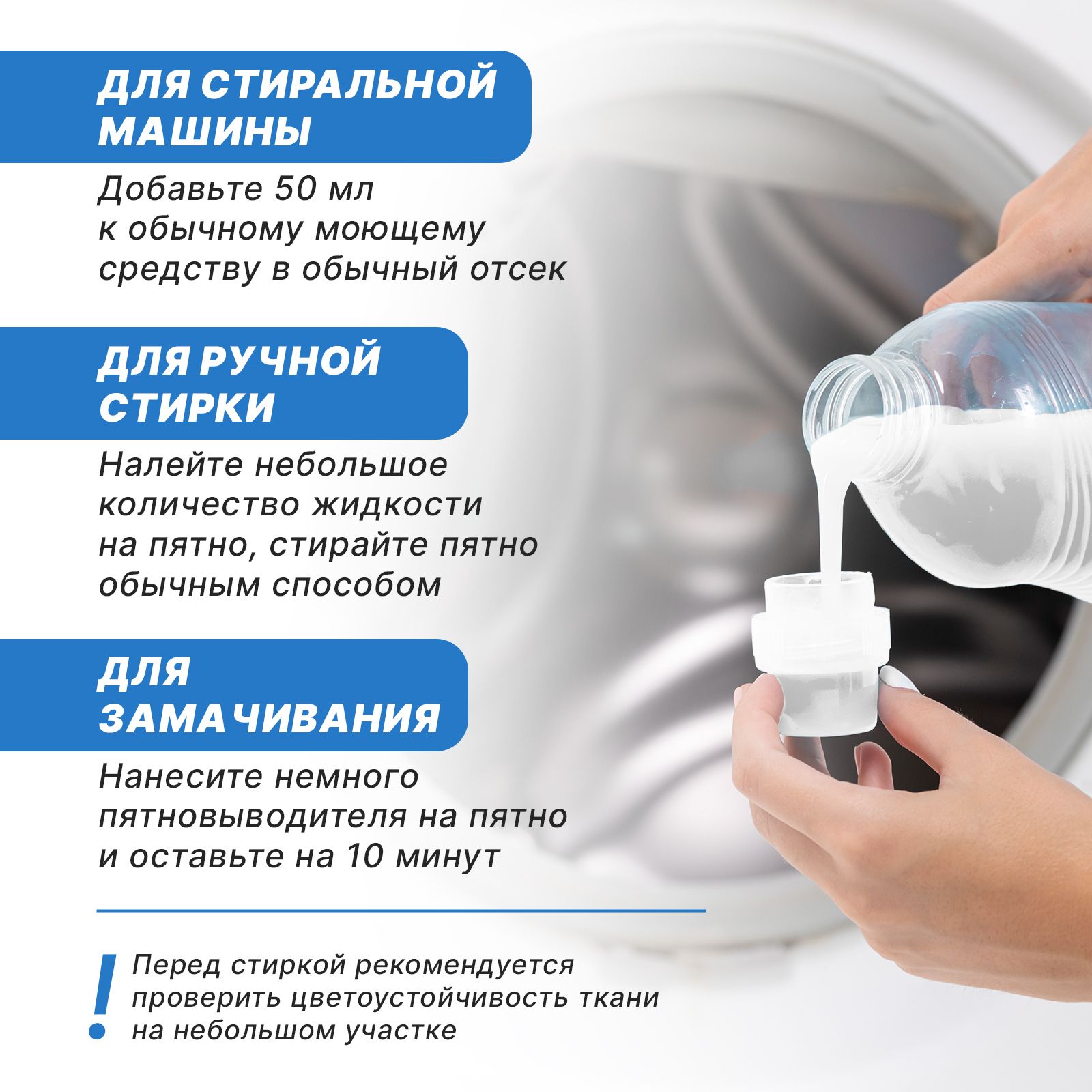 Первый способ — нанесите гель на пятно перед стиркой и подождите 5-10 минут. Потом вы постирайте ткань в машине или руками.r