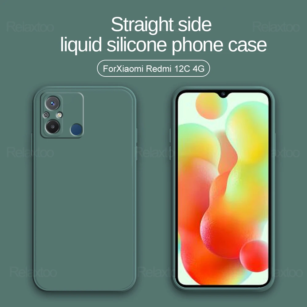 Жидкий силиконовый чехол с прямыми краями для телефона Redmi12C Redmi 12C 12 C C12 4G 22120RN86G, ударопрочный мягкий чехол-бампер для камеры 6,71 дюйма