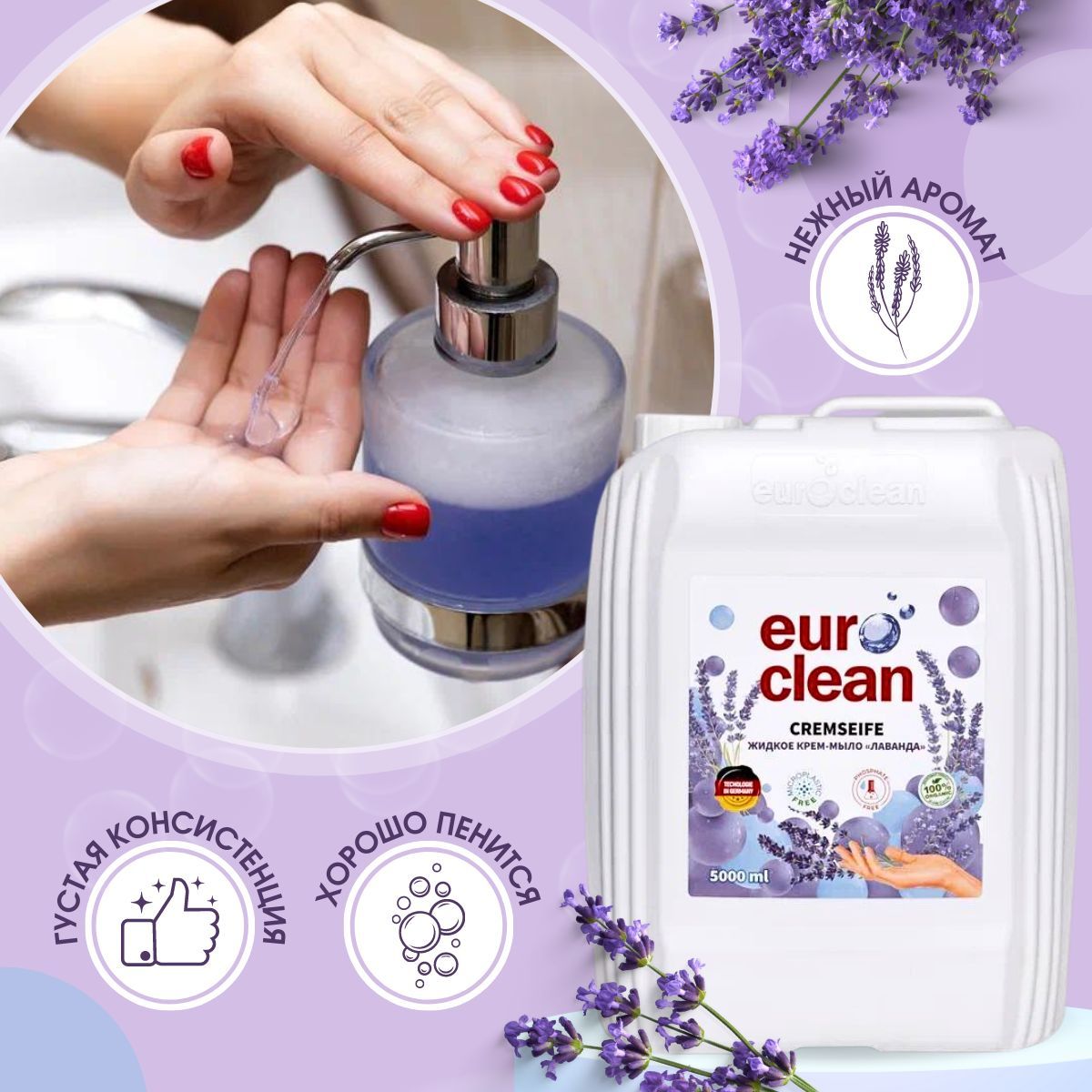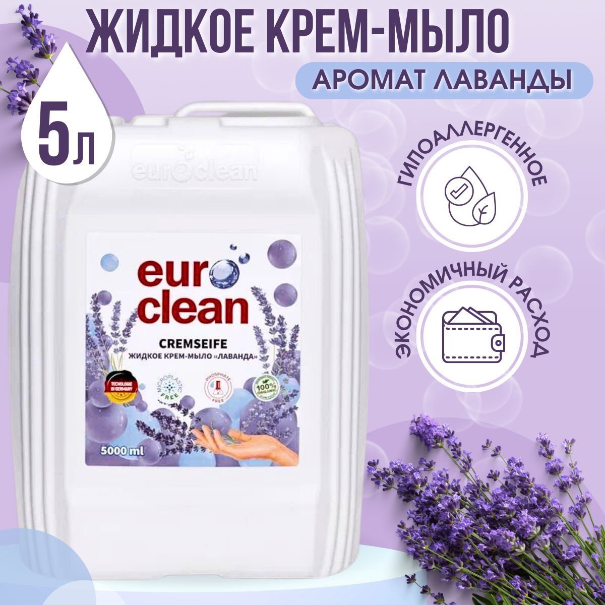 Жидкое крем-мыло "ЛАВАНДА" жидкое мыло для рук 5 л EUROCLEAN