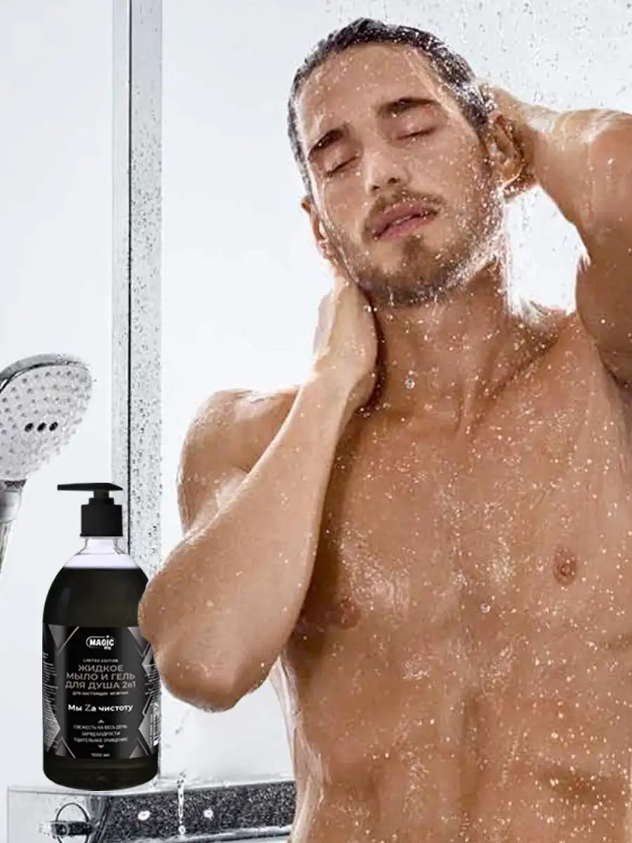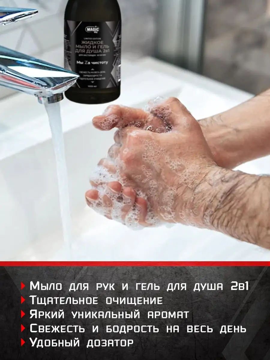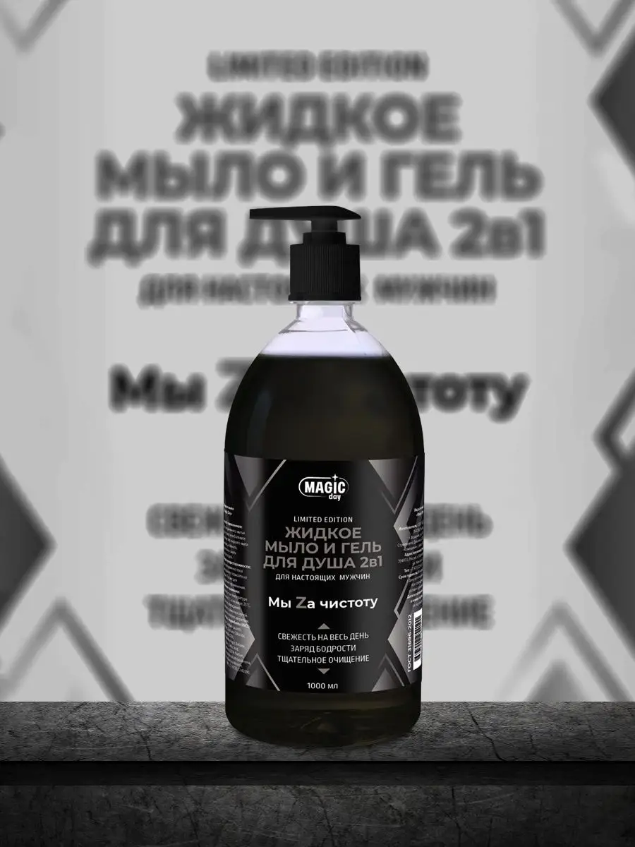 Жидкое мыло/гель для душа мужской Мы Za Чистоту Черное, 1 л