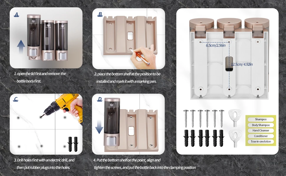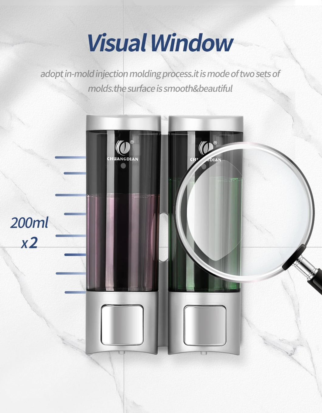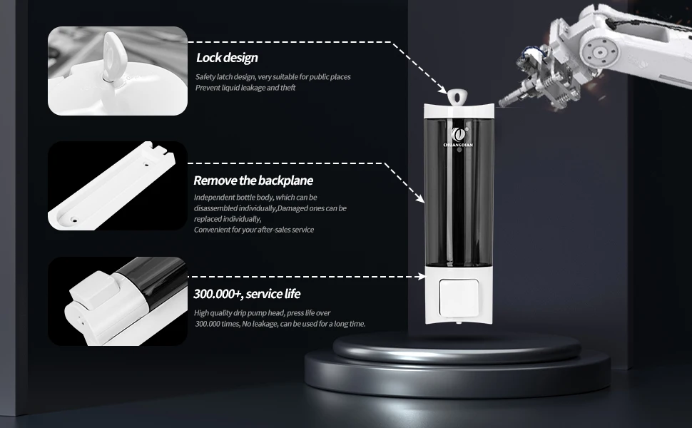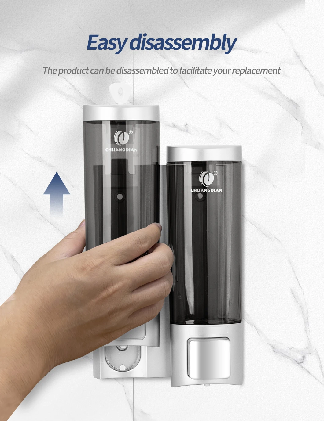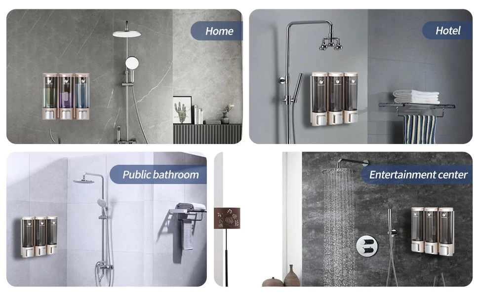 2,3-диспенсеры для чашек: с емкостью 3x200 мл, Диспенсер может содержать большое количество жидкого мыла, домашних лосьонов, шампуней и т. д. с деликатным выходом, не капать без вытягивания, нет грязных пятен и не теряет мыло.
