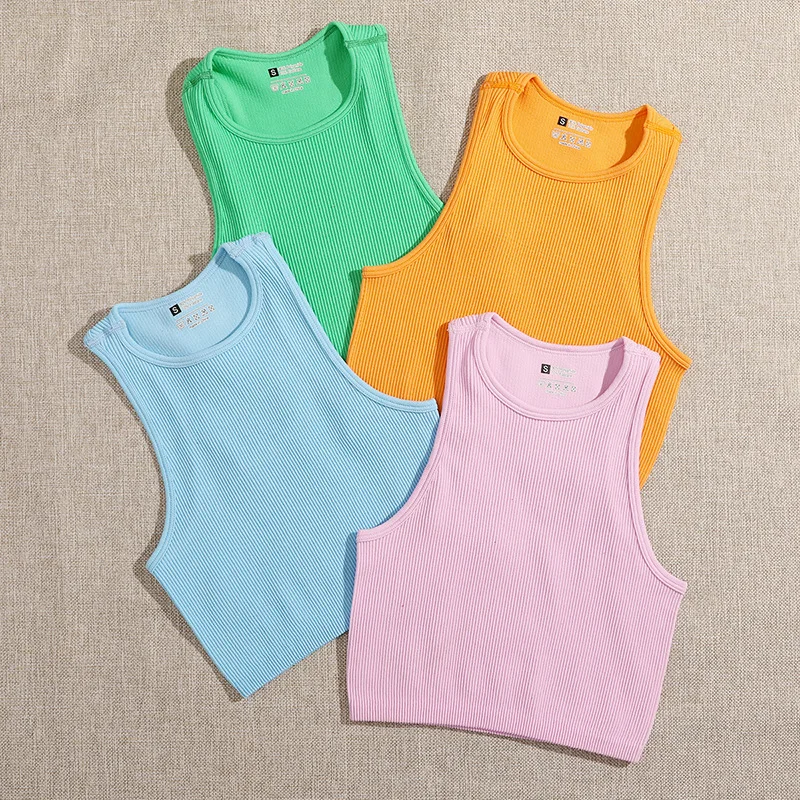 Жилет для йоги, женские спортивные кроп-топы для тренажерного зала, бесшовные обтягивающие однотонные жилеты для фитнеса и бега, бюстгальтер для тренировок, майка, женская футболка, спортивная одежда