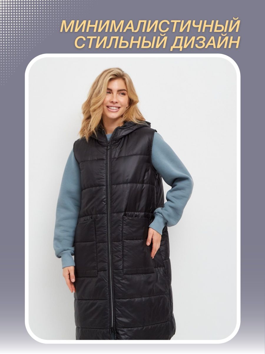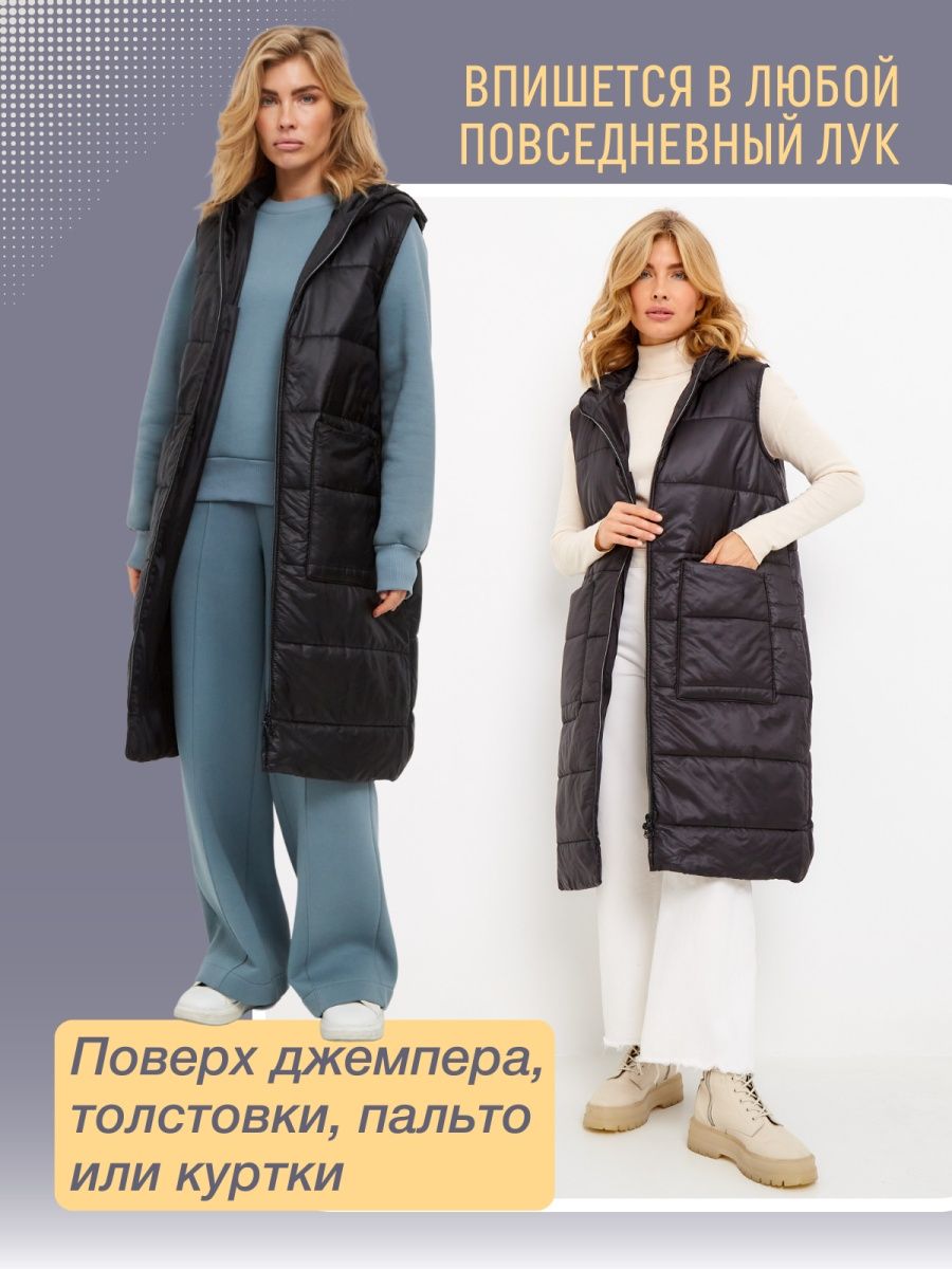 Описание: Удлиненная женская безрукавка - не только практичная согревающая вещь, но еще и стильное дополнение любого образа. Длинная дутая жилетка универсальна на весну и осень - ходить на работу, ездить за город, на отдых, заниматься спортом и гулять. В сложенном виде женский жилет осенний занимает мало места - удобно брать с собой в путешествие. Разнообразие стилей позволяет носить длинную куртку с любой одеждой. Уютный жилет с капюшоном, выполненный из водоотталкивающей стеганой плащевой ткани подходит для дождливой погоды. Тёплую длинную безрукавку можно носить поверх толстовки или легкой куртки вплоть до зимы. Безрукавка отлично подойдет для занятий спортом ( скандинавская ходьба), для прогулки, повседневной носки. Легкая весенняя безрукавка удобна для автоледи. Жилет больших размеров скрывает проблемные участки и подчеркивает зону декольте. Спортивный жилет оверсайз отлично сохраняет тепло и не продувается. Уже несколько сезонов дутая верхняя одежда является частью модных луков. Современный демисезонный жилет - стильная и функциональная вещь, которую носят женщины с разными интересами в любом возрасте. Отличный подарок на день рождения!