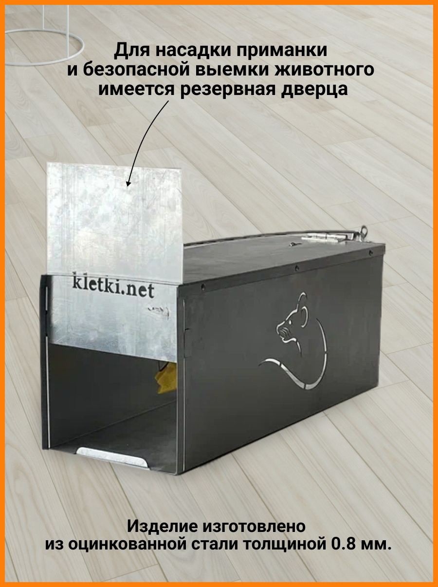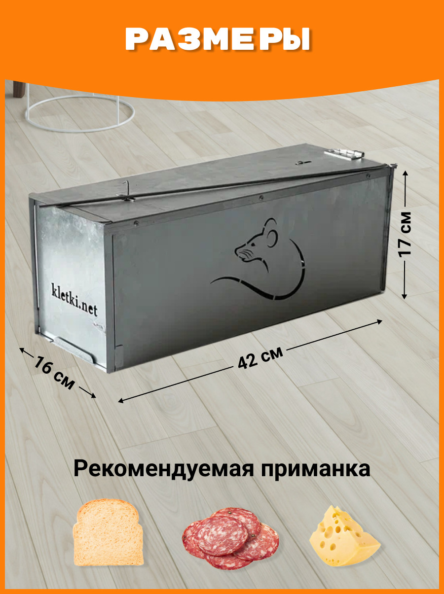 Описание: Крысоловка клетка металлическая предназначена для отлова грызунов. Применяется в основном на объектах, где запрещено использование ядов, брызг крови, также может быть использована как гуманная ловушка.