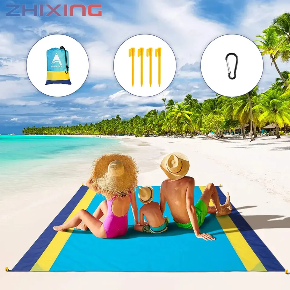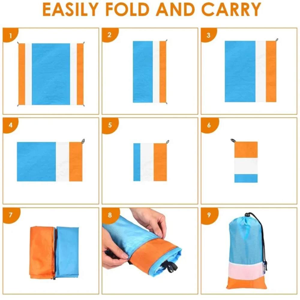 Это пляжное одеяло изготовлено из полиэфирного волокна и прошито профессиональным процессом. Он прочный, износостойкий, светильник и дышащий. С улучшенным нейлоновым материалом, это анти-старение, анти-выцветание и ультрафиолетовое излучение. Кроме того, пляжное одеяло можно мыть или протирать непосредственно, и оно быстро высушивается.