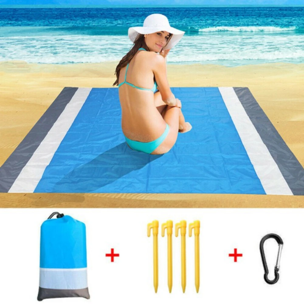 С 4 гвоздями и угловыми мешками с песком вы можете положить песок или камни в мешки с песком, так что вы не будете беспокоиться, что пляжный коврик будет выдуваться. Он изготовлен из специального нейлона, поэтому вам просто нужно встряхнуть одеяло, чтобы легко удалить весь песок.