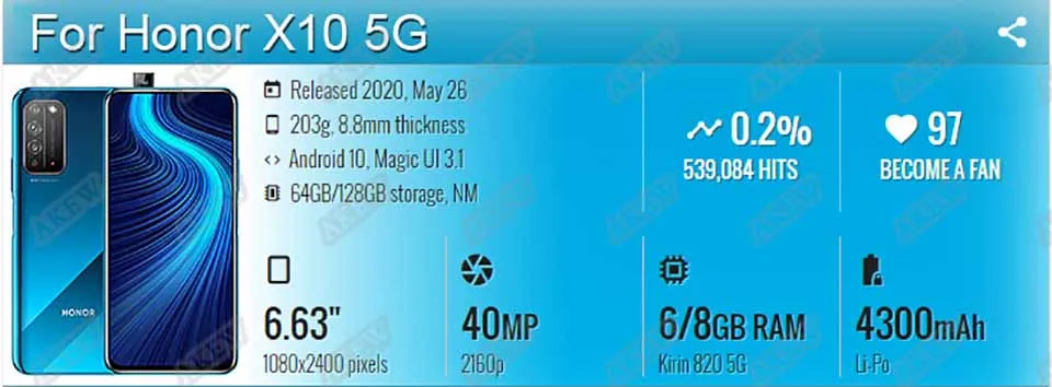 Model Number2 For Huawei Honor X10 5G LCD Display