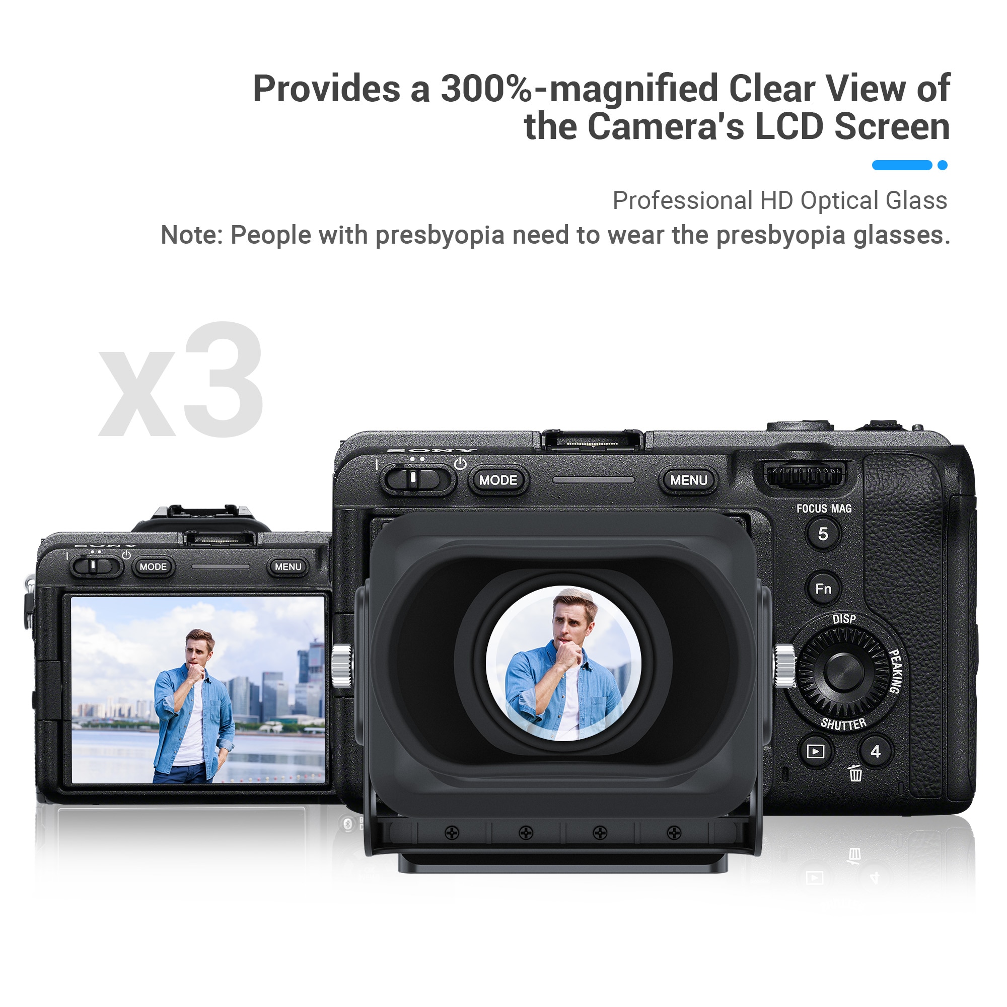 JJC LVF-PRO1FX Camera LCD Viewfinder is specially designed for SON. FX30, FX3. It blockslight from hitting the screenfora clearand contrastingview even in bright sunlightand provide a 300%-magnified view of the camera's LCD screen.