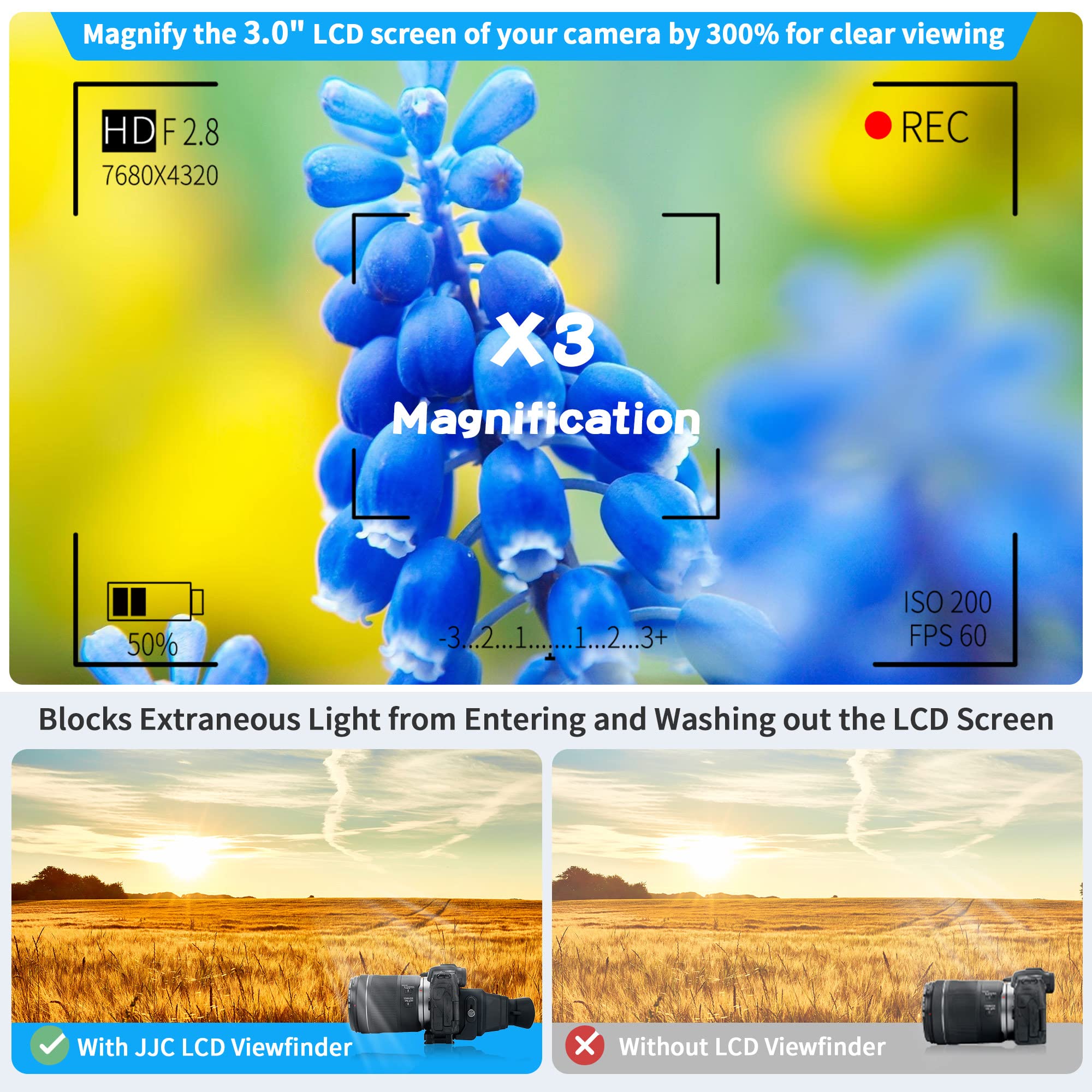 JJC Professional Collapsible Soft Silicone LCD Camera Viewfinder 3.0x HD Magnifier for Sony FX30 FX3 Camera Screen Sunshade Hood