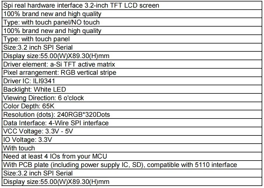 ЖК-модуль TFT 3,2 дюйма 320*240 SPI с сенсорной панелью IC ILI9341 для Arduino MCU