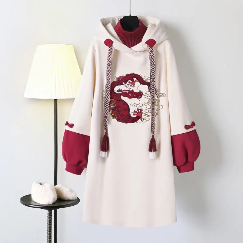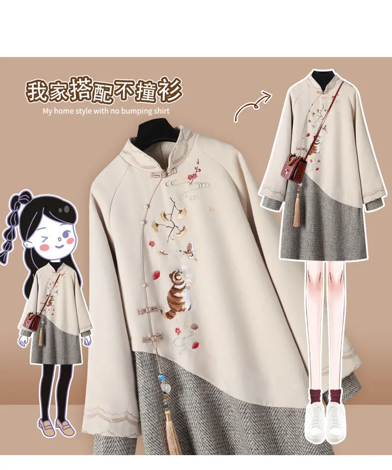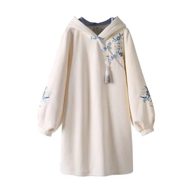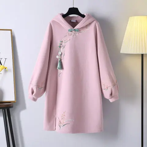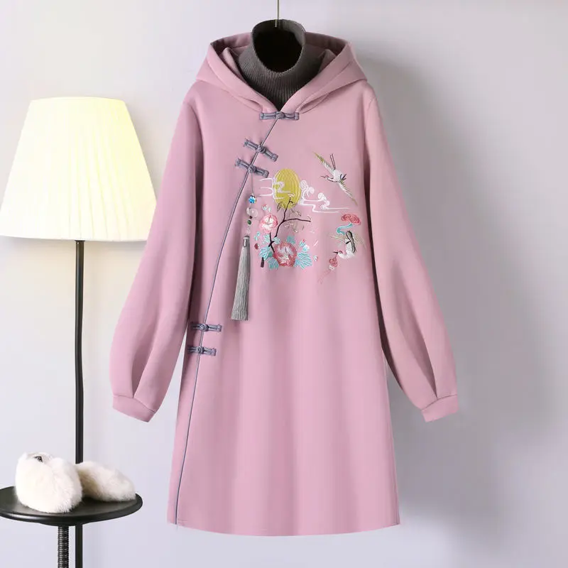 Зимнее женское платье с вышивкой в традиционном китайском стиле