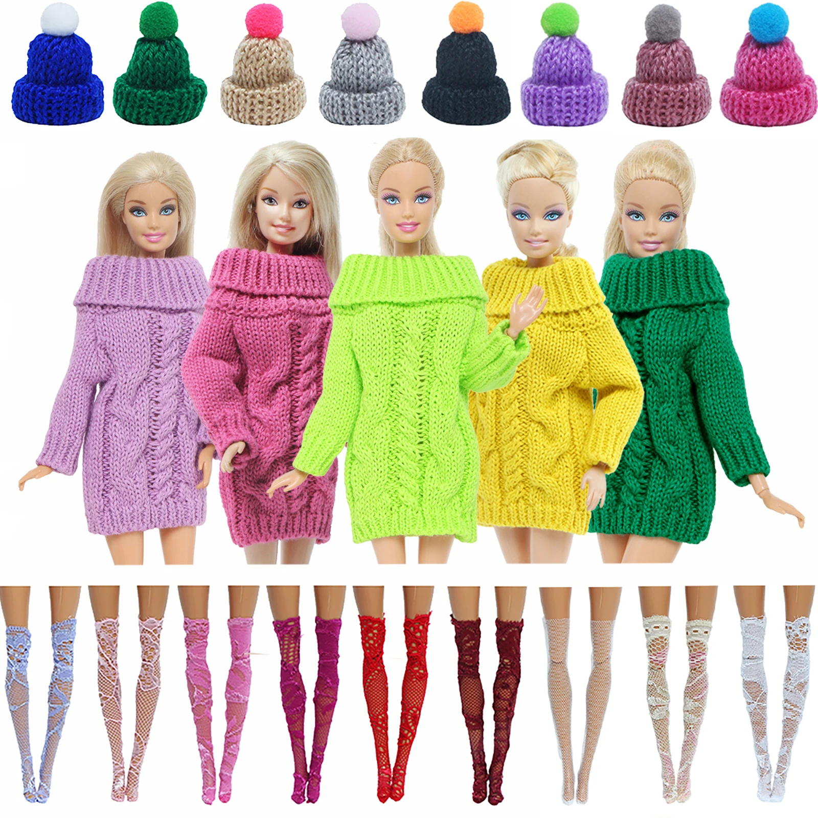 Зимние кукольные наряды ручной работы, шапка, чулки, вязаный свитер, Одежда для куклы Барби, детские игрушки, теплая Повседневная одежда, аксессуары