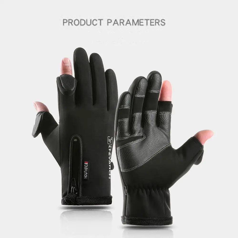 Зимние перчатки для верховой езды, 1 пара, рыболовные перчатки с двумя пальцами и откидной крышкой, ветрозащитные женские и мужские перчатки для фотосъемки, бархатные теплые защитные перчатки