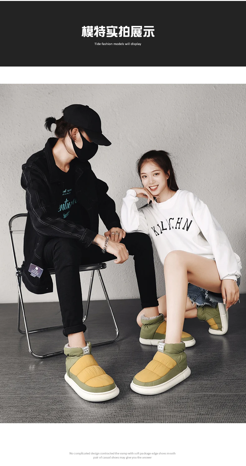 Зимние плюшевые уличные водонепроницаемые шлепанцы унисекс для мужчин и женщин