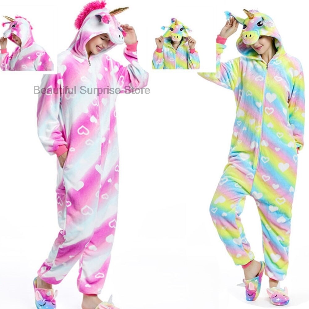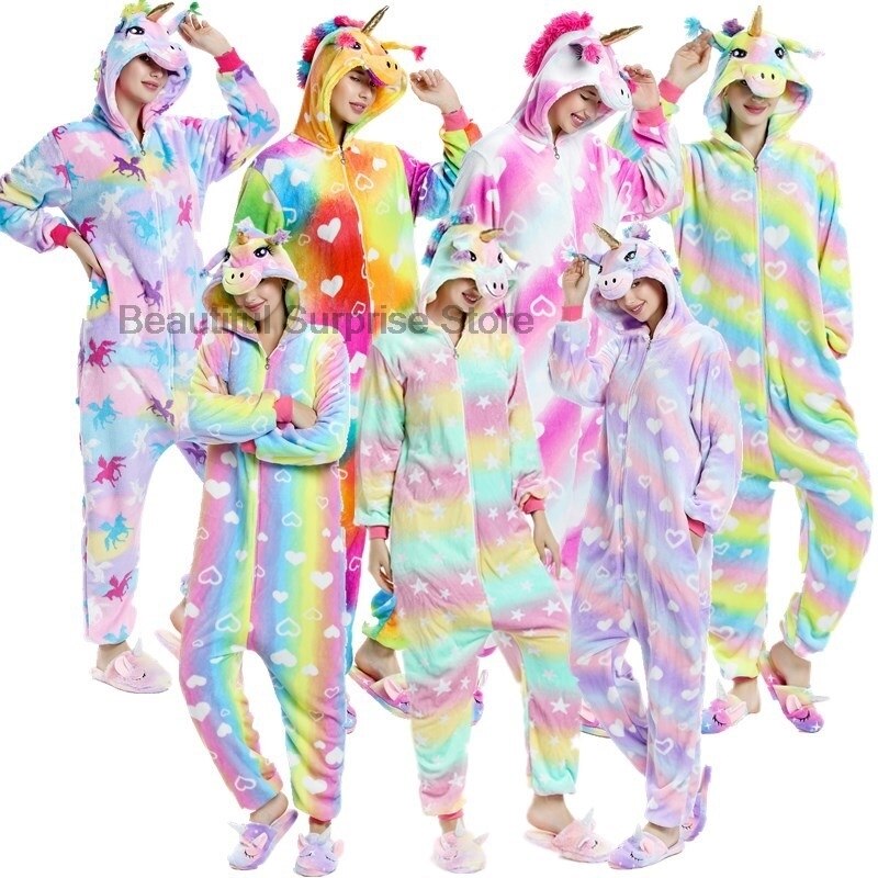 Зимние взрослые женщины дети кигуруми животные Единорог комбинезоны мультфильм пижамы Хэллоуин семья Рождество пижамы Косплей Костюм