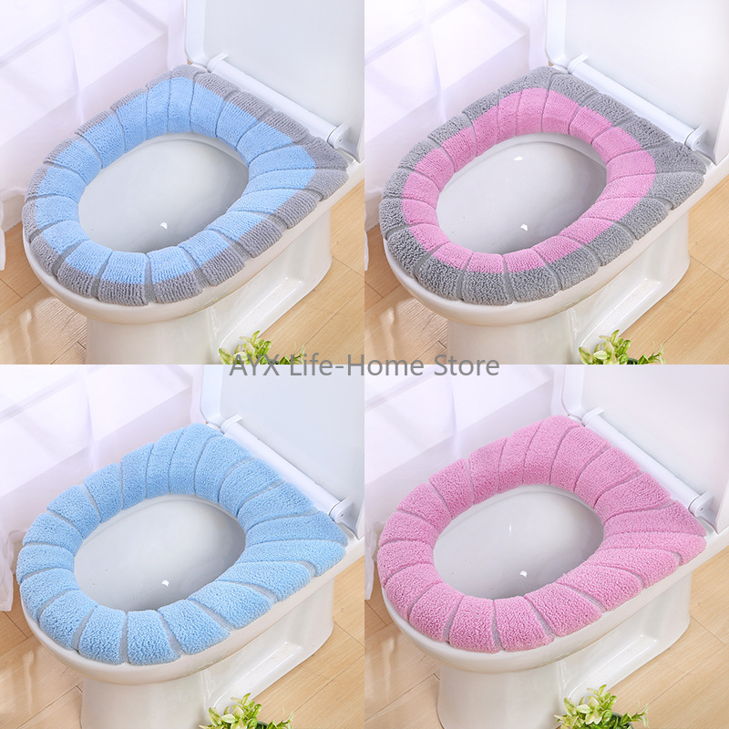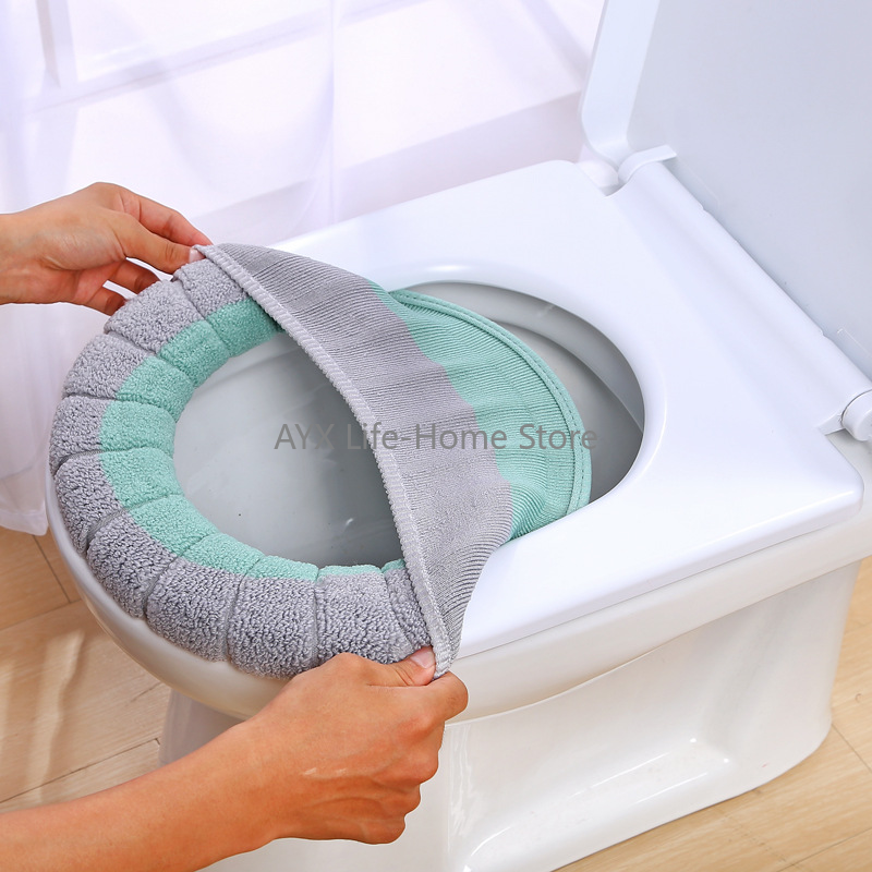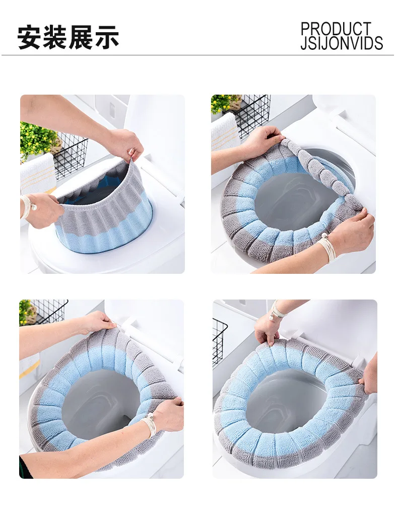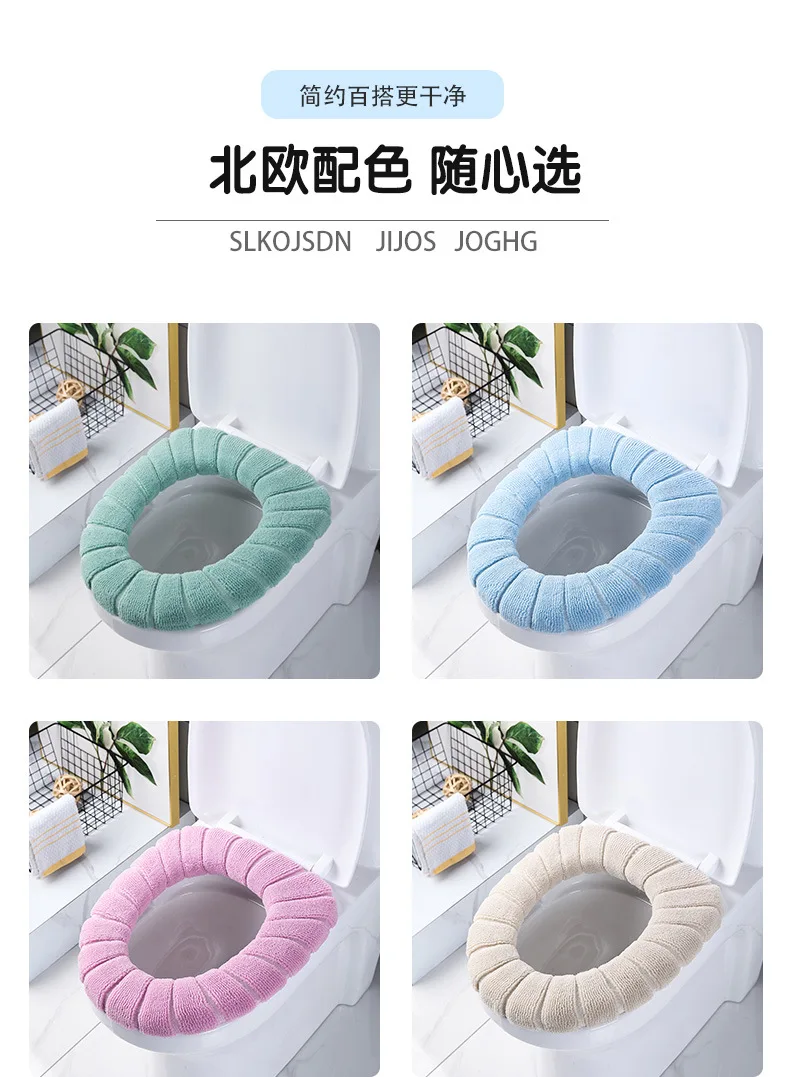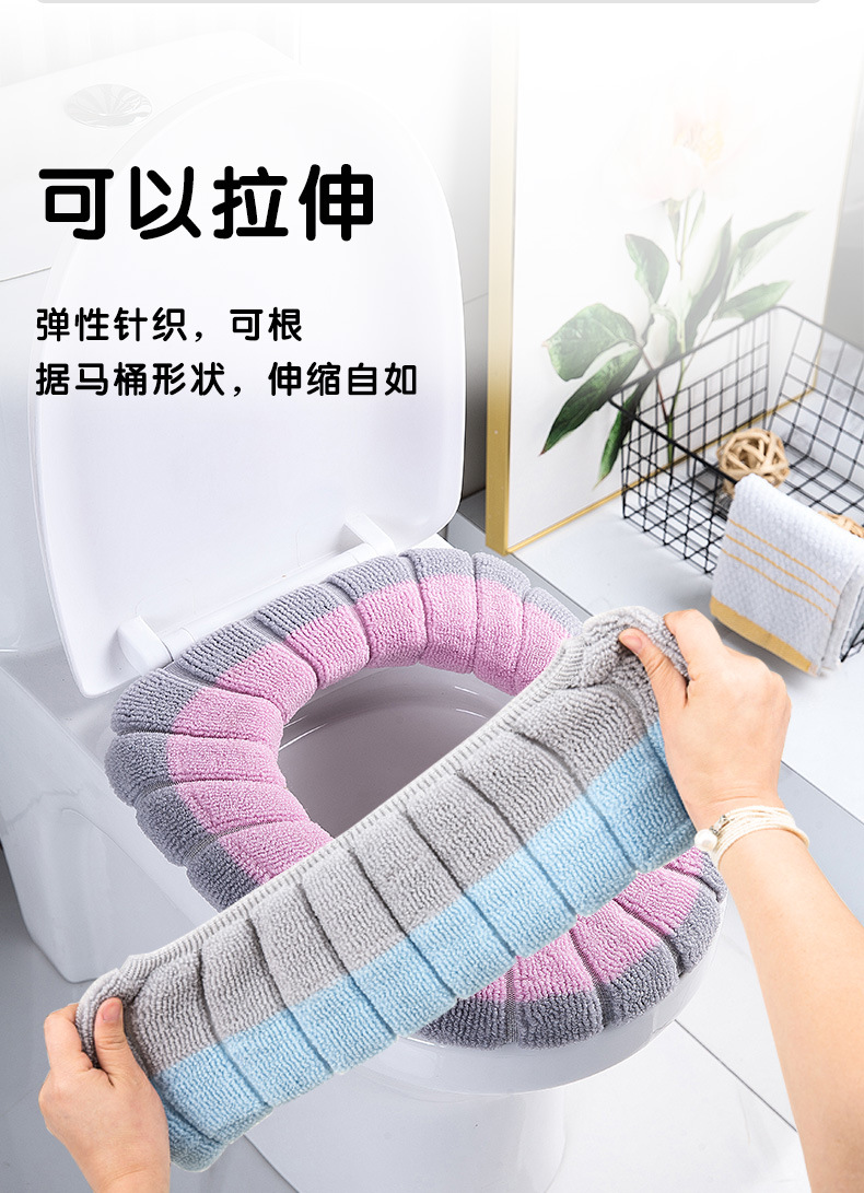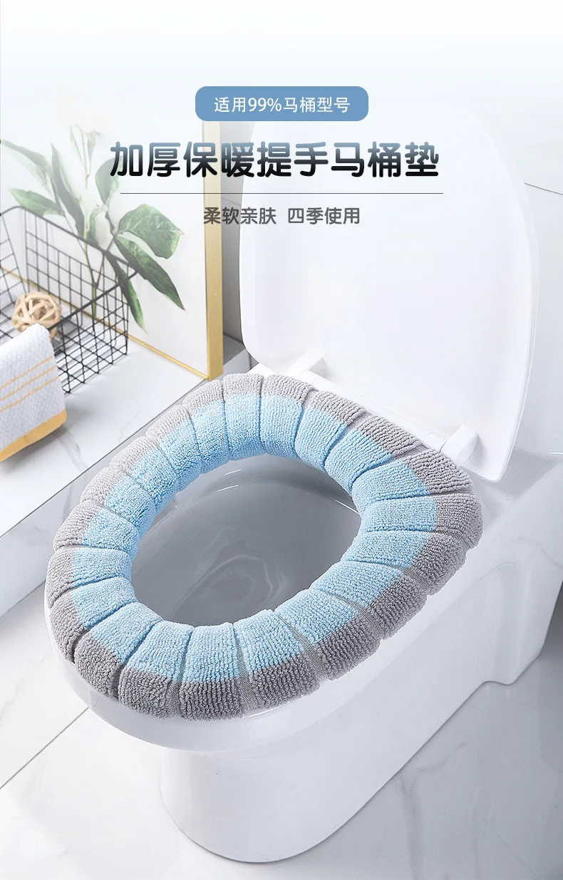 Зимний чехол для унитаза, моющаяся подушка для ванной комнаты с ручкой, утолщенный мягкий коврик, трикотажный обогреватель