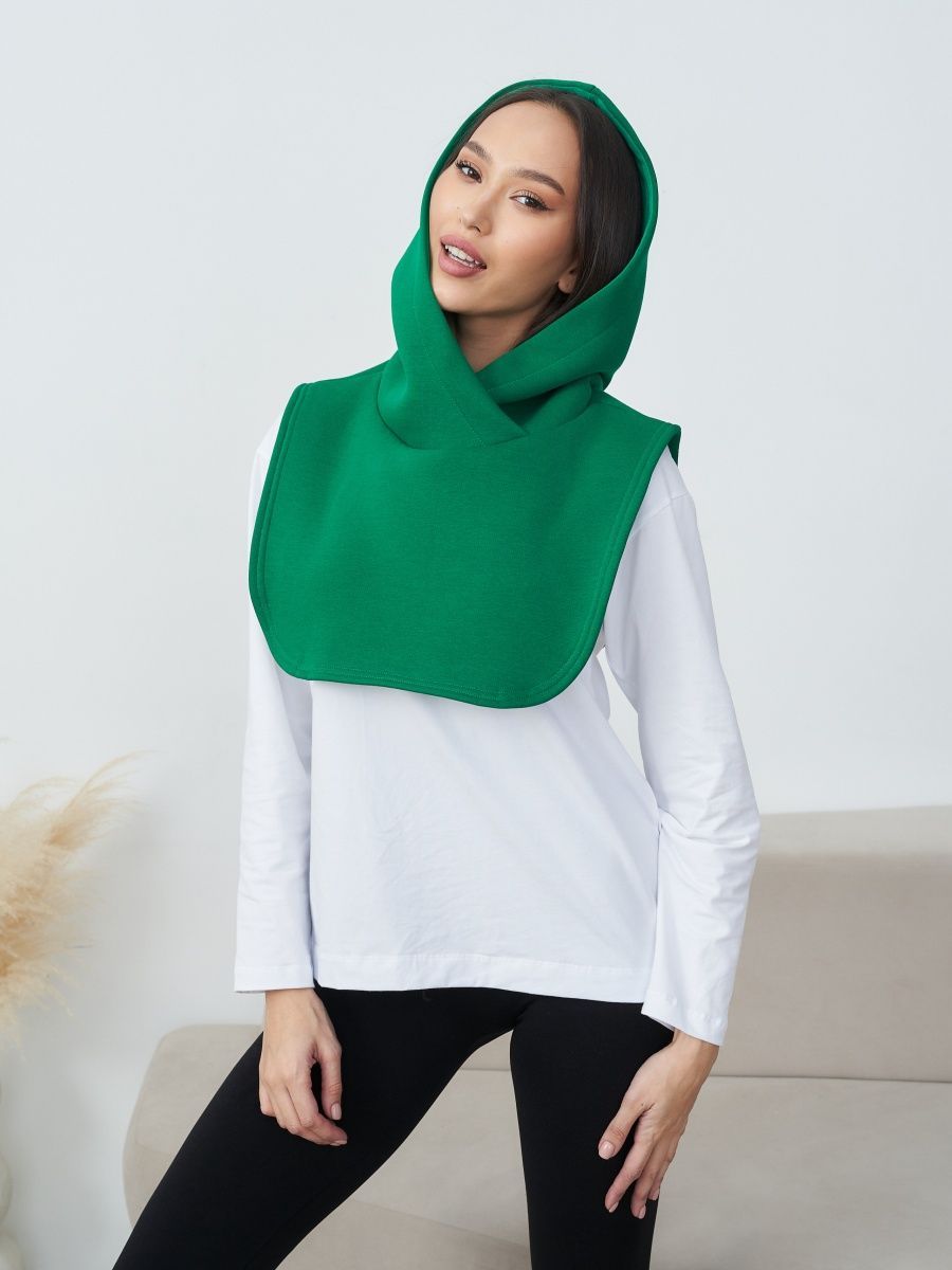 Описание: Отдельный капюшон - удобный современный аксессуар, способный заменить шапку и шарф одновременно. Тренд осенне-зимнего сезона. Модный головной убор согреет Вас в ненастную погоду. Наш капор глубокий, объемный, на хлопковой подкладке. Он надежно защитит голову от холода и непогоды не повредив прическу и макияж. А длинная манишка создаст дополнительное утепление груди и спины. Актуален в любое время года - зимой, весной и осенью. Будет очень кстати прохладным летом. Это удачное приобретение в случае, если понравилась верхняя одежда без капюшона, а хочется тепла и защищенности, которые без него затруднительны. Его можно носить вместо шапки или поверх нее. Поэтому он заслуженно популярен у девушек, подростков и женщин всех возрастов. Модель сшита из плотного трехниточного футера. Органично смотрится с классическим плащом или пальто, дополняя женственный образ. Выгодно подчеркнет стиль кэжуал или спорт-шик. Скинутый на плечи выглядит как красивый воротник или снуд-хомут. Предназначен для повседневной носки, прогулок, путешествий. Его приятно получить в подарок на любой праздник и торжество. Такой презент непременно оценят. В ассортименте нашего бренда большой выбор капюшонов, выполненных как в базовых универсальных, так и в ярких цветах - для различных поводов и настроения. Приятных Вам покупок!