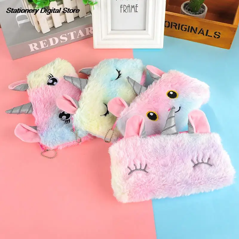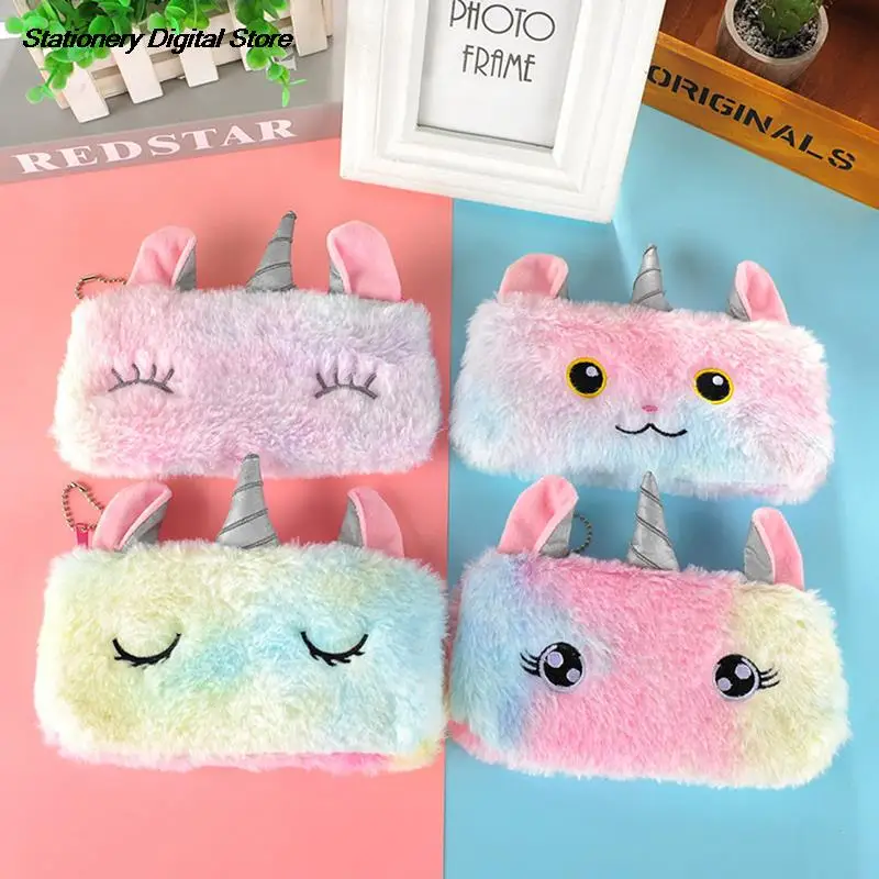 Зимний Радужный пушистый карандаш, Детский милый плюшевый пенал для девочек
