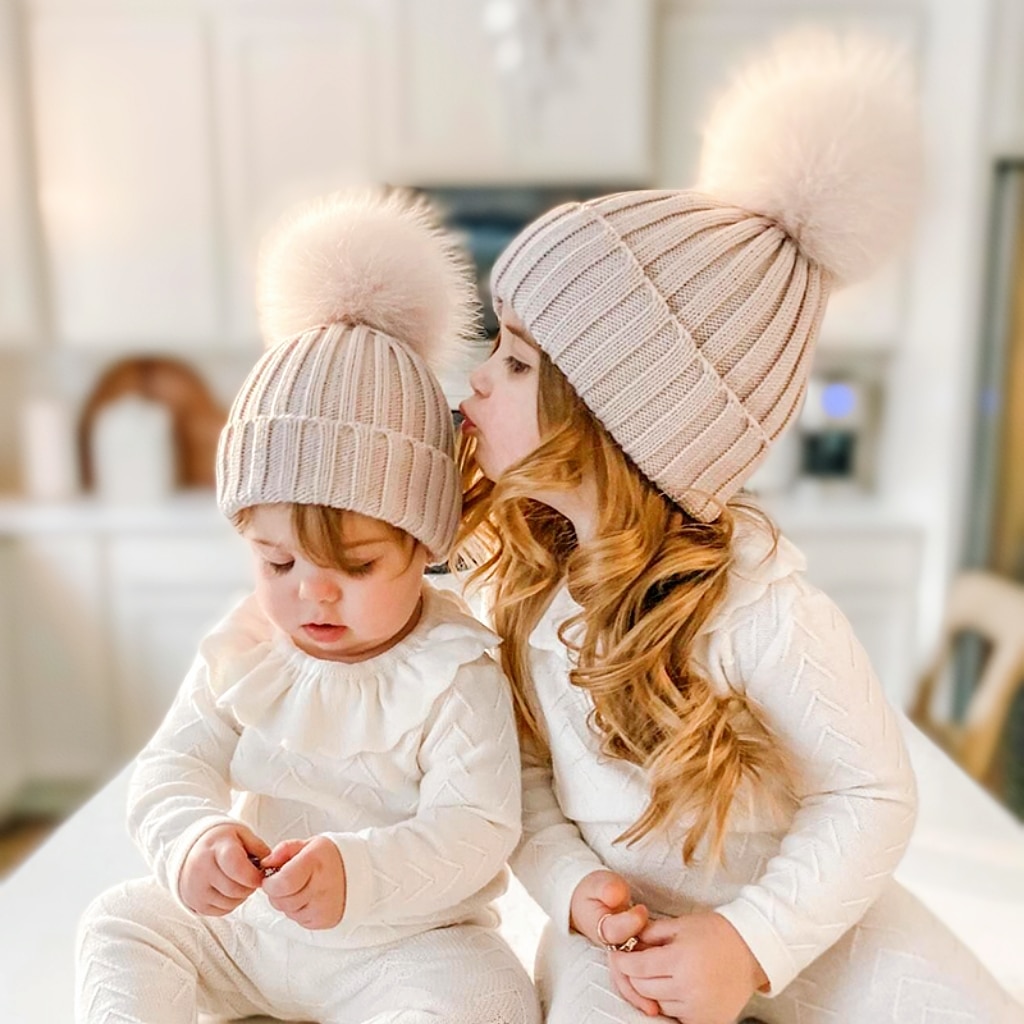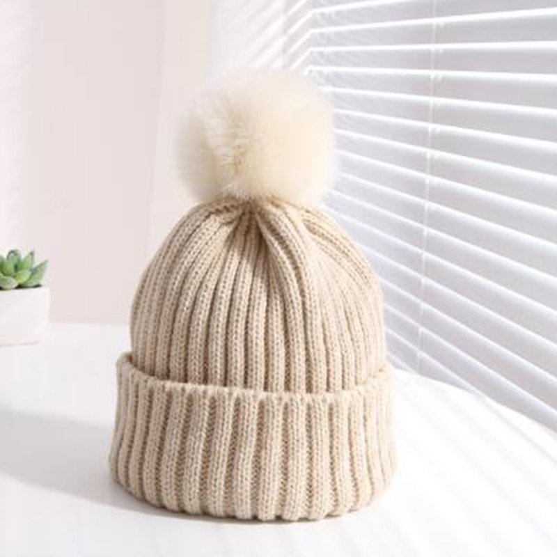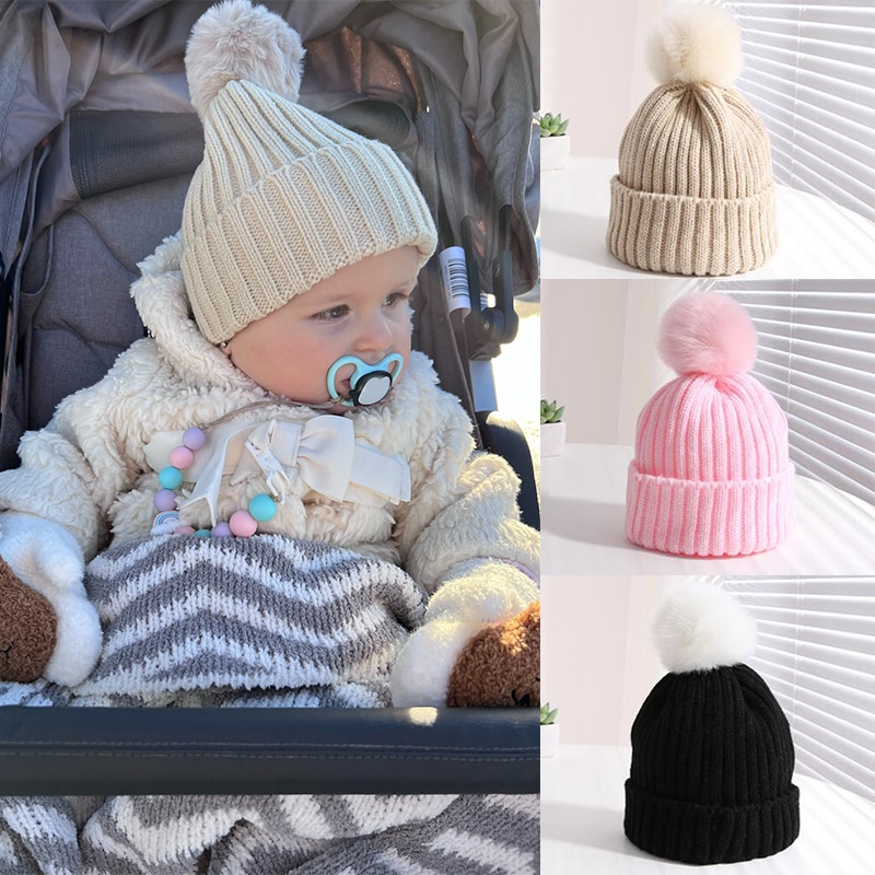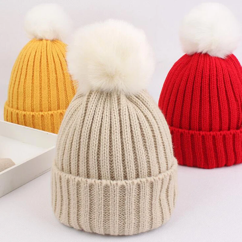 Зимняя большая Осенняя тёплая флейма с большим помпоном, однотонная Милая шапка с помпоном для волос для маленьких мальчиков и девочек, шапки, головные уборы