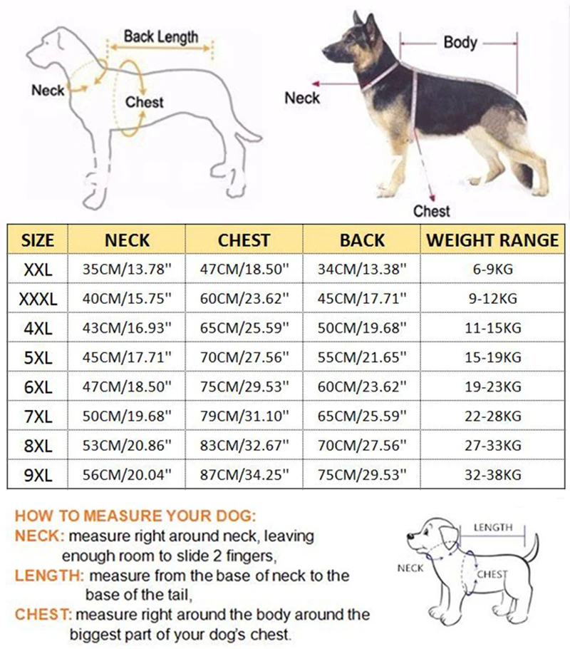 2. Для двух ног, пожалуйста, обратите внимание на обхват груди, и для четырех ног, должны соответствовать обхвату груди и длине спины.