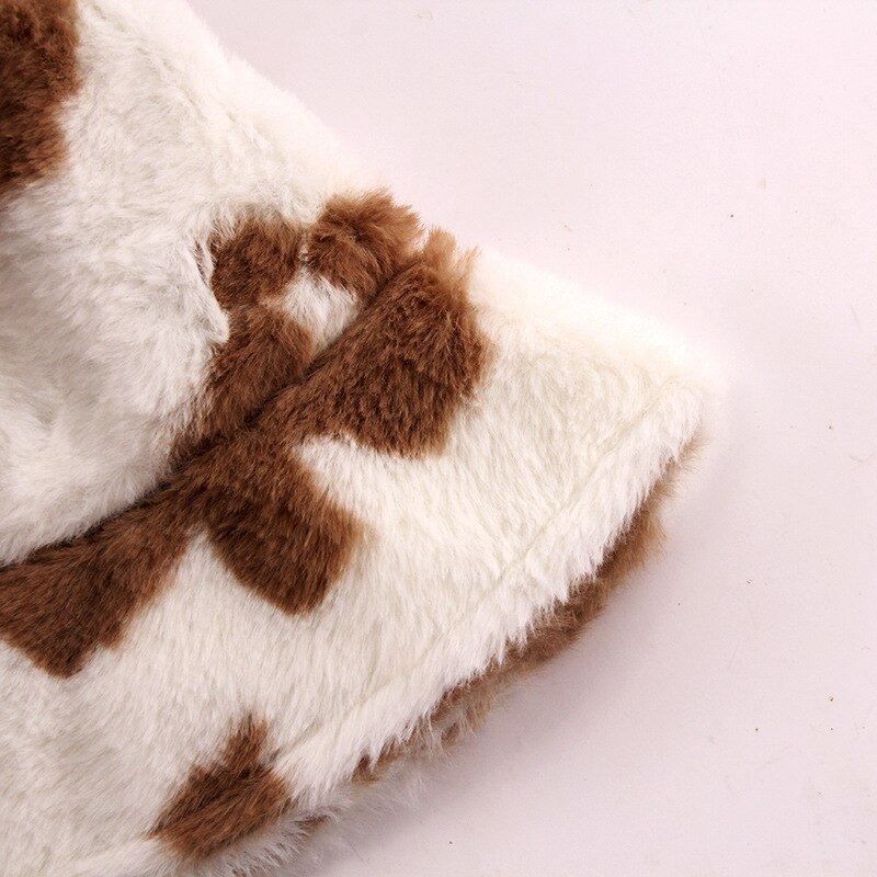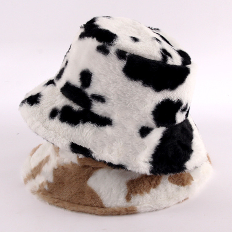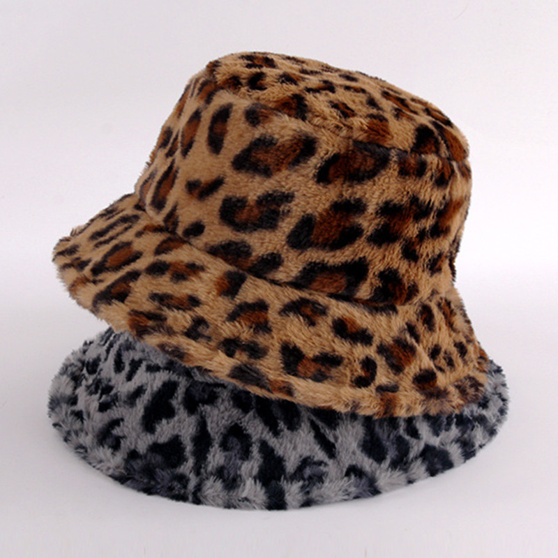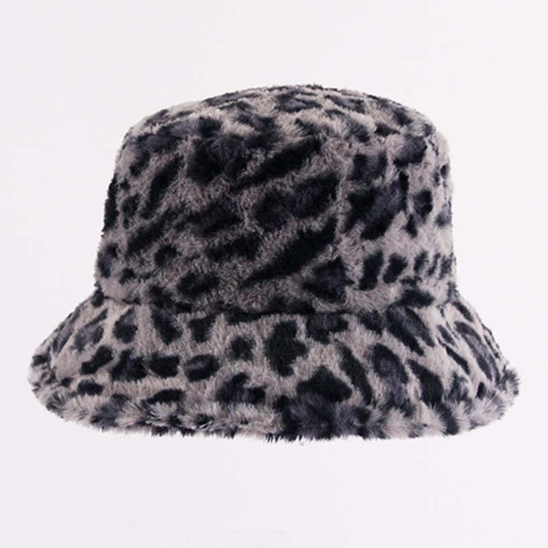 Зимняя шапка-Панама из искусственного меха с коровьим леопардовым принтом, женская уличная теплая шляпа от солнца, мягкая бархатная рыболовная Кепка, модная Панама для девушек