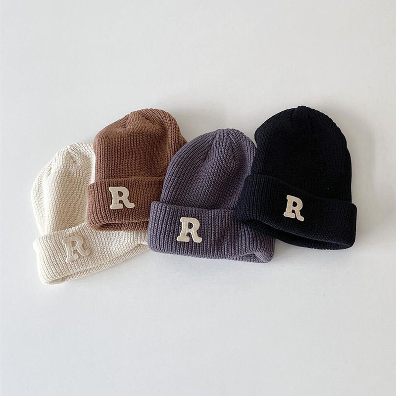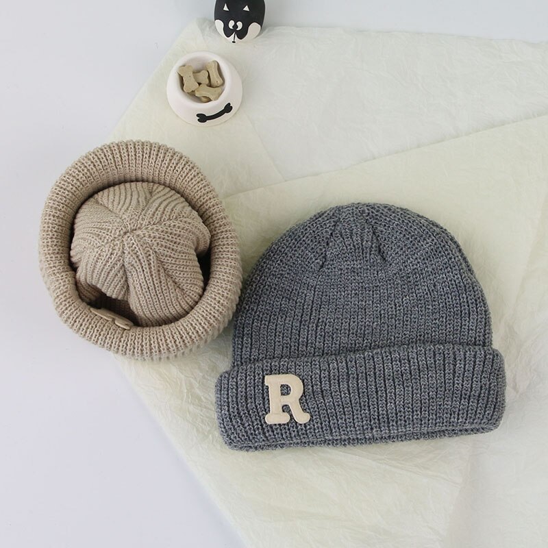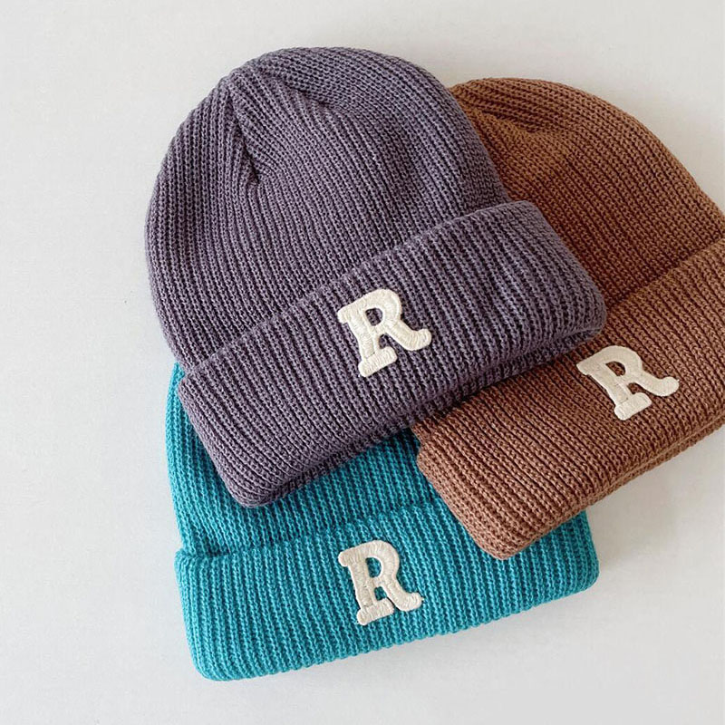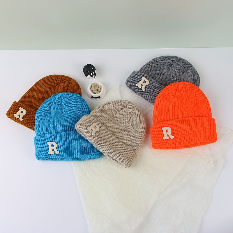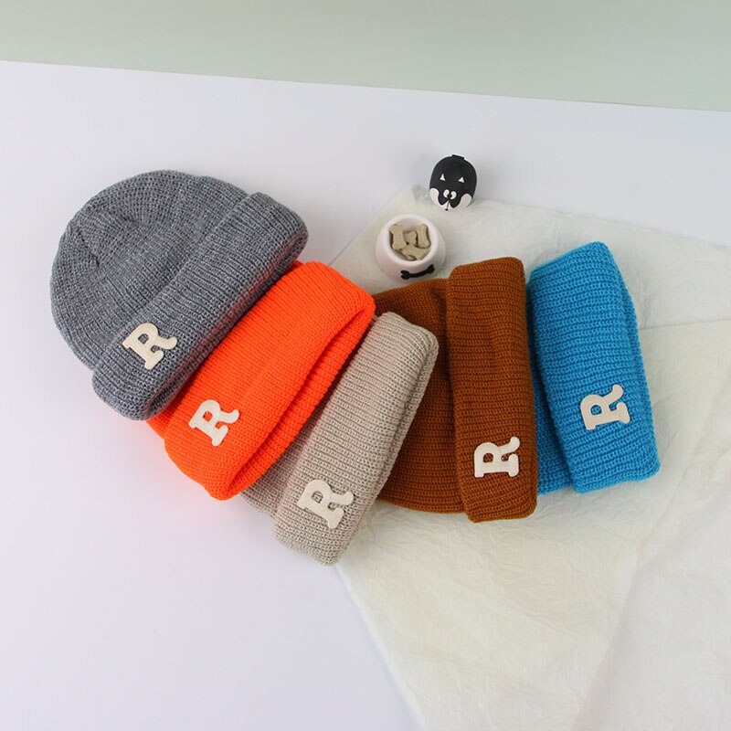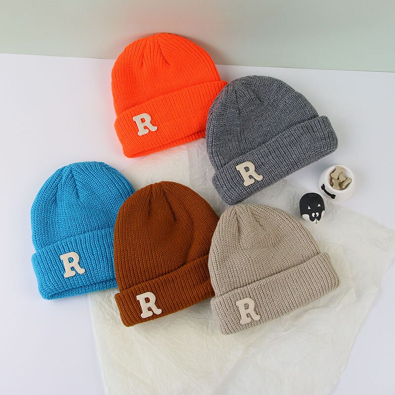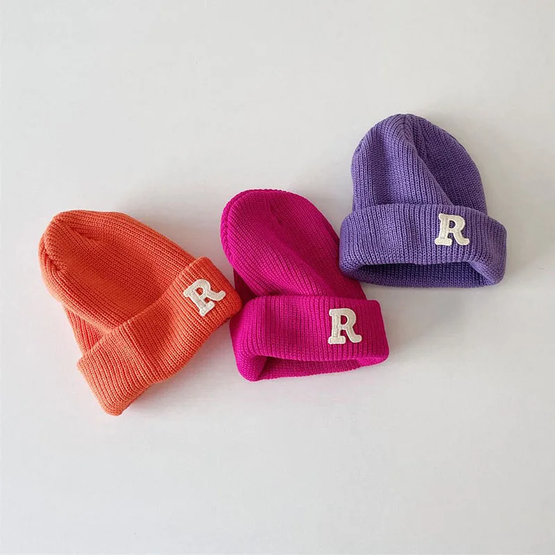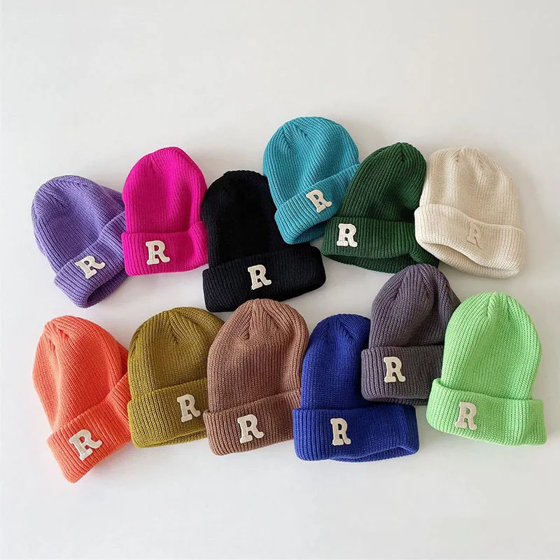Зимняя женская Шапка-бини конфетных цветов с буквенным принтом, детская Шапка-бини для мальчиков и девочек, теплые осенние шапки-бини в Корейском стиле