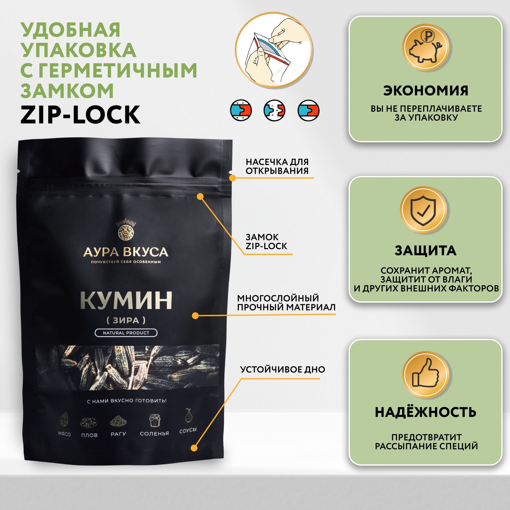 Зира Семена (Кумин) Натуральные 400 г. Аура Вкуса. Приправа Натуральная универсальная.