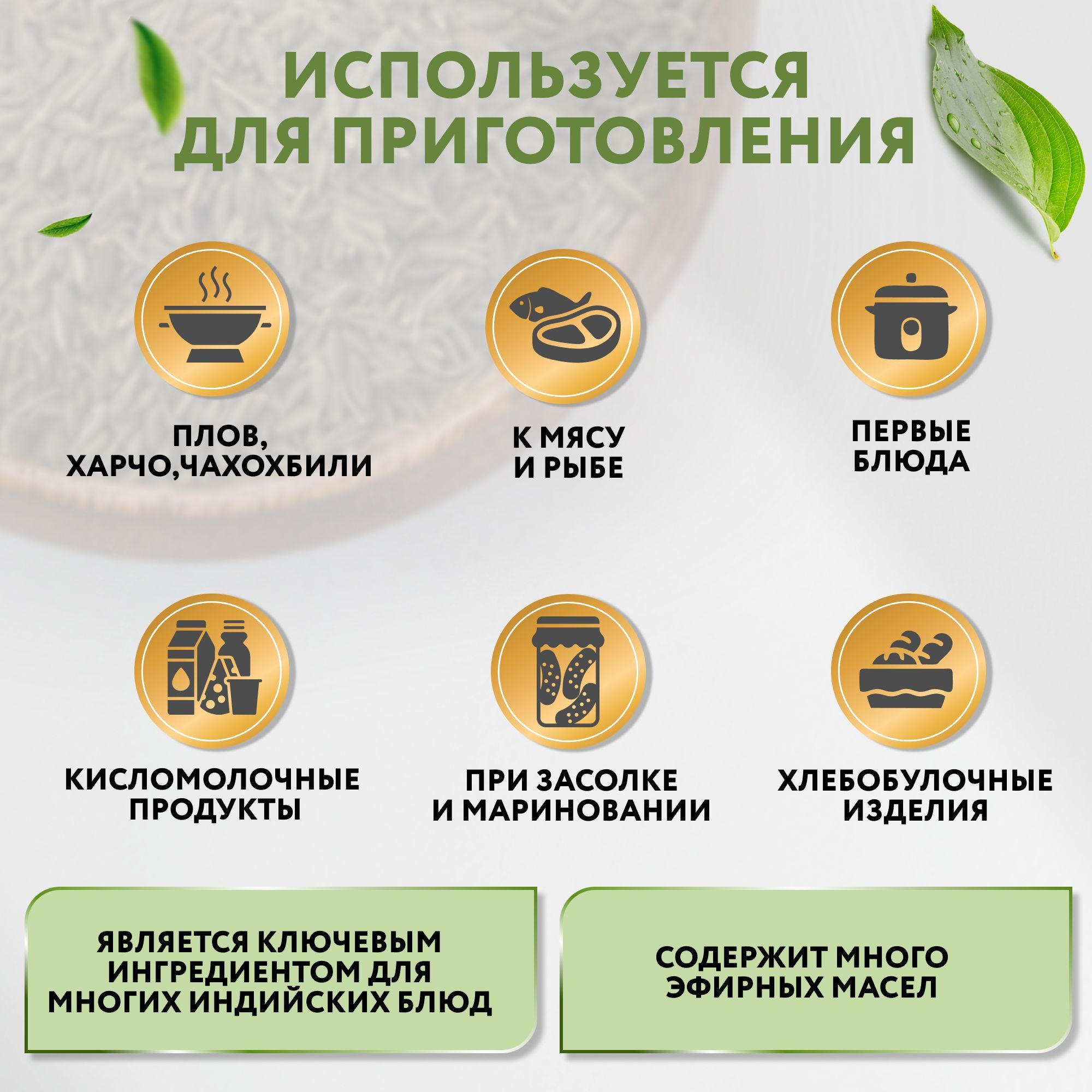 Назначение приправы: Для блюд из картофеля, Для блюд на гриле, Для выпечки и кондитерских изделий, Для жаркого, Для консервирования, Для копчения, Для курицы, Для маринада, Для мясных блюд, Для овощей, Для плова, Для птицы, Для риса, макарон и пиццы, Для рыбы и морепродуктов, Для салатов, Для свинины, Для соусов, Для супов, Для украшения блюд