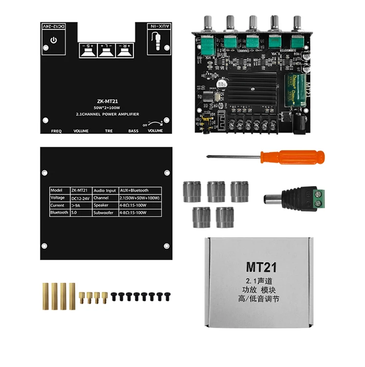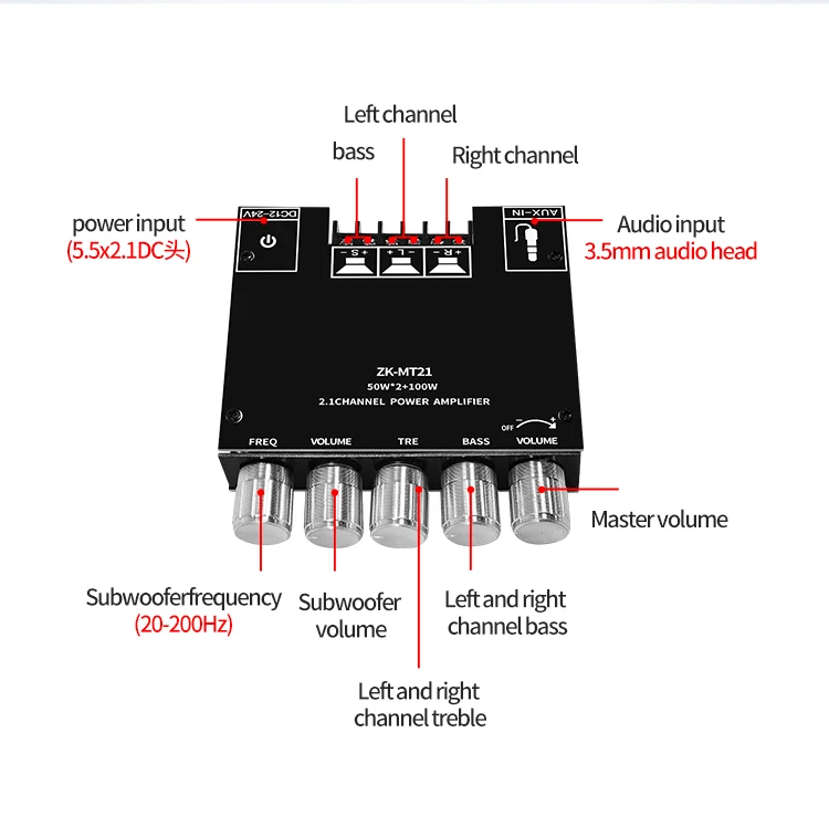 ZK-MT21 Bluetooth 5,0 панель усилителя сабвуфера 50 Вт x2 + 100 Вт 2,1 канальный усилитель мощности аудио стерео усилитель