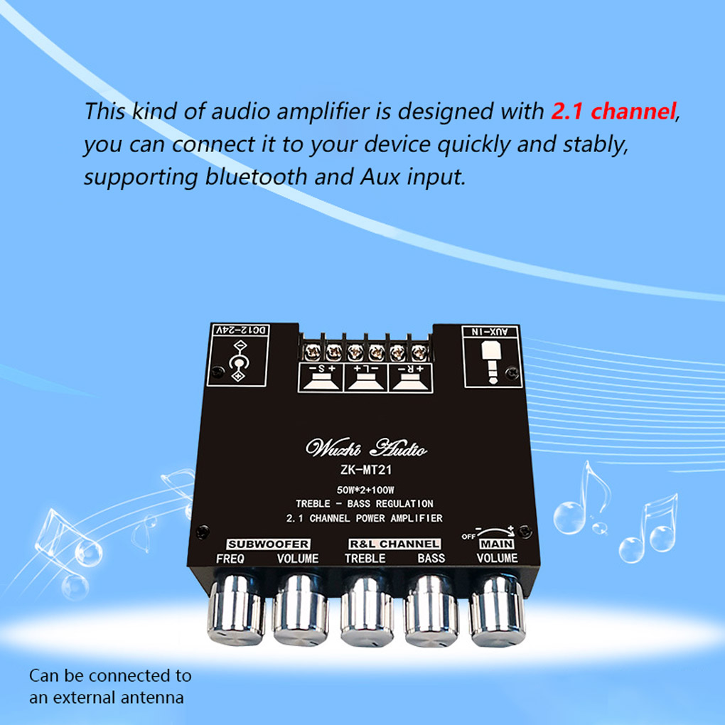 ZK-MT21 TPA3116 2,1 канальный Bluetooth 5,0 панель усилителя сабвуфера 50 Вт x2 + 100 Вт Мощный аудио стерео усилитель панель бас усилитель AUX