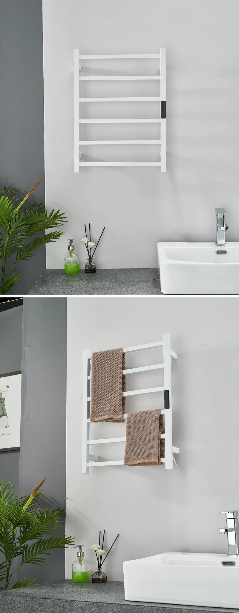 Подсказка:Использование электрических вешалок для полотенец, помимо того, что вы можете использовать сухие полотенца каждый день, также может эффективно снизить риск размножения бактерий во влажной среде ванной комнаты. Кроме того, вы также можете сушить детскую одежду, банные полотенца и т. Д.