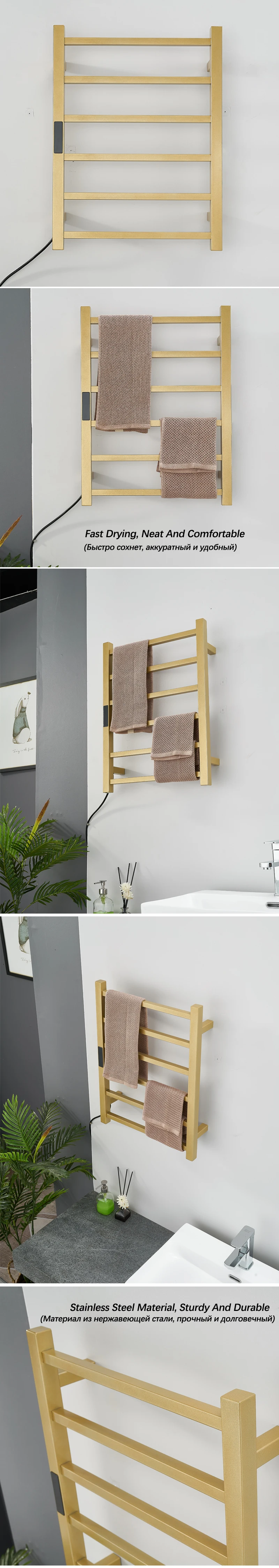 Золотая/черная/белая электрическая грелка для полотенец. Сушилка для полотенец с цифровым дисплеем. Настенная электрическая грелка для полотенец. Скрытый/открытый кабель.