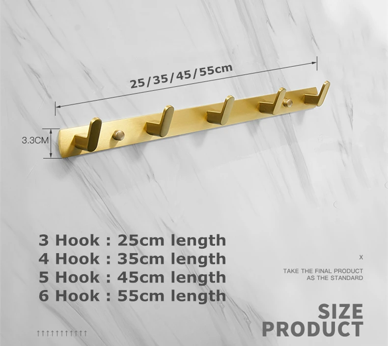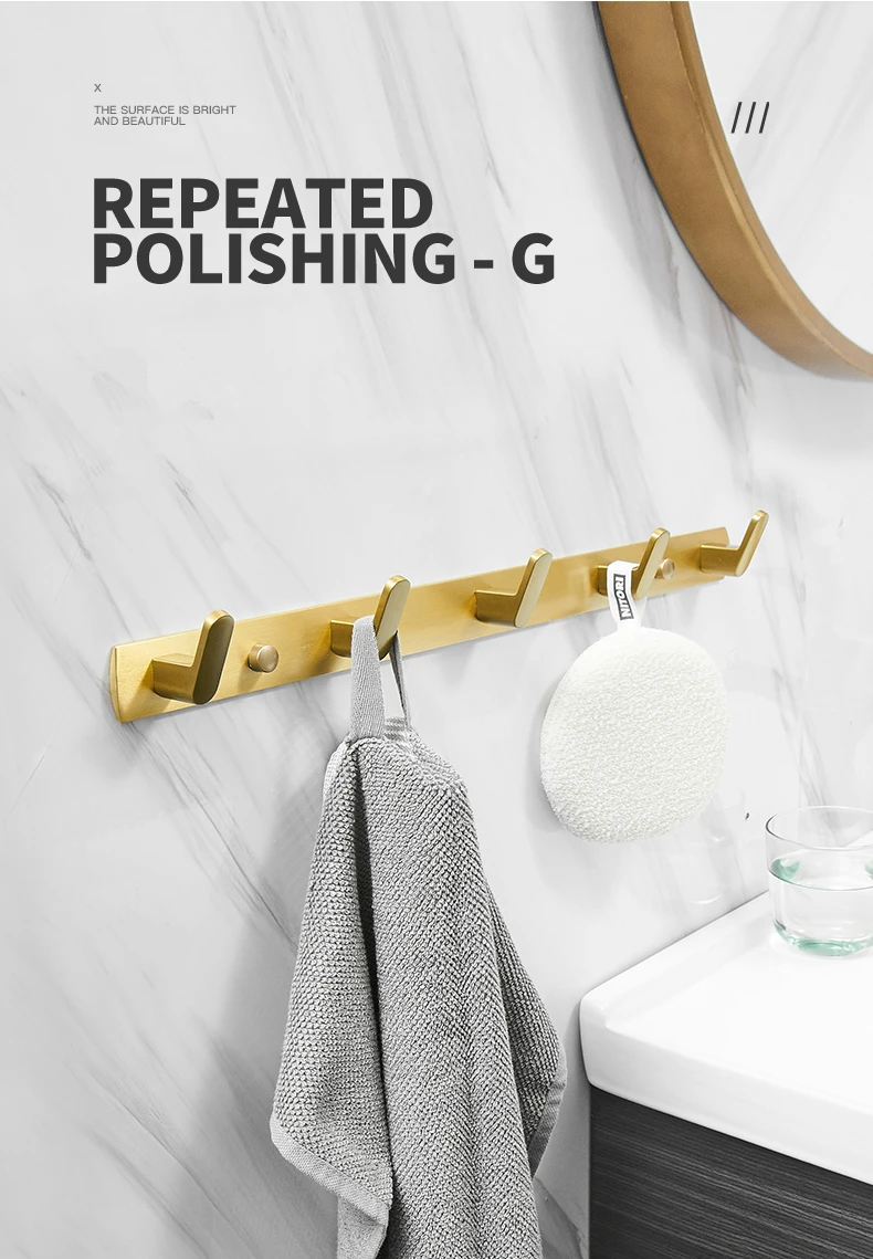 Золото матовый халат крючок, крючки для пальто Полотенца вешалки настенные крючки Ванная комната аппаратный крючок двери крючки