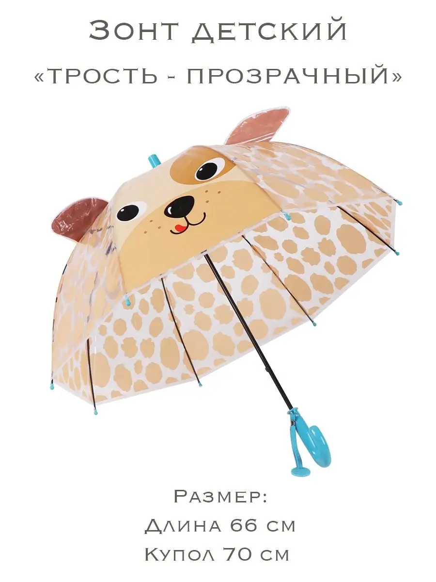 Описание: Вы можете купить зонт детский для девочки и мальчика в ассортименте, в карточке представлены на выбор зонт прозрачный и не прозрачный. К вашему выбору представлены 4 персонажа в виде животных. Корова, собака, кот, медведь, тюлень, заяц. Данные герои универсальны и подойдут как для мальчика так и девочки. Вид зонта трость. Механизм полуавтомат, легко открывается и закрывает. Размер купола 70-86см, общая длина зонта 66-67см (в зависимости от выбранной модели "размеры указаны на фото")