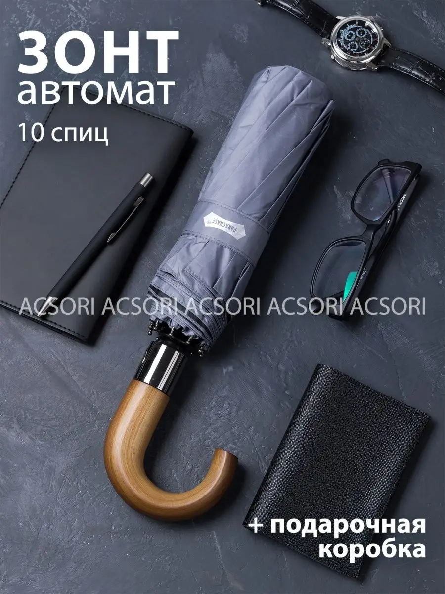 Описание: Мы рады представить Вам зонт классический Parachase. Наконечники из фибергласса, большой купол зонт диаметром 102 см, изготовленный из практичного полиэстера с водоотталкивающей пропиткой для защиты от дождя, просто складывается и упаковывается в чехол. Компактный складной зонт автомат имеет прочный каркас с антикоррозионным покрытием. Надежная усиленная конструкция из 10 алюминиевых спиц защитит от дождя и от солнца. Рукоятка деревянная отлично лежит в руке и не выскальзывает, способствует равномерному распределению нагрузки по всей ладони, добавляет статуса. В нашем ассортименте вы сможете выбрать для себя вариант рукоятки зонта: прямая или крючком. Элегантная модель зонта автоматического Parachase подчеркивает стиль и образ его владельца, а простота складывания позволит использовать зонтик не только взрослому, но и подростку. Зонтик - незаменимый аксессуар, создающий стильный образ. Зонты Parachase представлены в нескольких цветах, а также к нему идет чехол. Зонт – прекрасный и практичный подарок на праздник или просто так мужу, парню, любимому мужчине, другу, коллеге, дедушке, папе, брату, сыну, а благодаря классическому дизайну и отсутствию рисунка, такой аксессуар устроит жену, любимую женщину, девушку, подругу, маму, бабушку, сестру, дочь. Сочетание стильного комфорта и безупречного качества не оставит равнодушным ни одного мужчину! Рекомендации по эксплуатации: 1) избегайте использовать зонт при сильном порывистом ветре. Несмотря на то, что зонт оснащен системой антиветер, что позволяет спицам выгибаться при порывах ветра во избежание поломок, мы не рекомендуем использовать данную модель при сильном порывистом ветре. 2) Перед хранением зонт необходимо хорошо высушить. 3) Рекомендуется держать зонт против ветра. Тэги: день рождения, день влюбленных, 23 февраля, 8 марта, уличный антикоррозийный мини зонт.